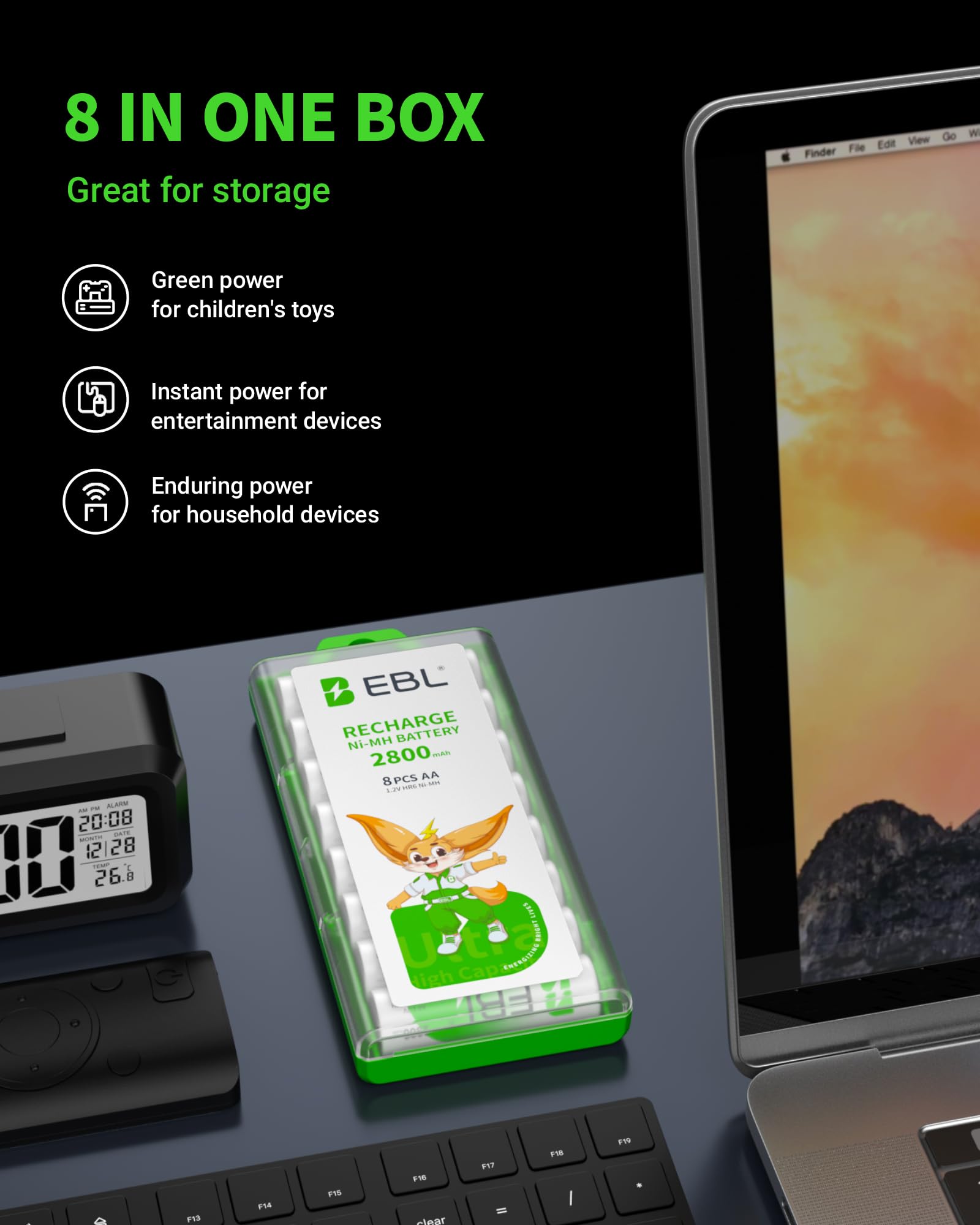 EBL Pack of 8 AA Batteries 2800mAh High Capacity Precharged Ni-MH AA Rechargeable Batteries