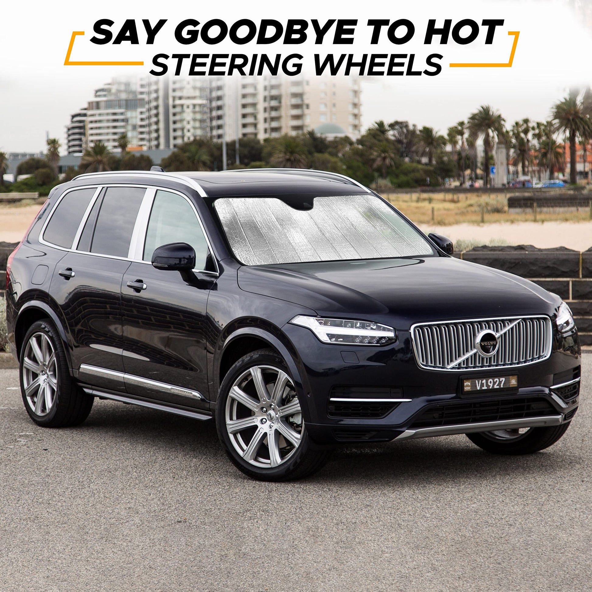 • Perfect Fit for Maximum Coverage: Measuring 58' x 28', this car windshield shade accordion style is perfect for most cars, trucks, and SUVs. It offers complete front window sun shade coverage, helping protect seats and electronics from overheating and UV damage.