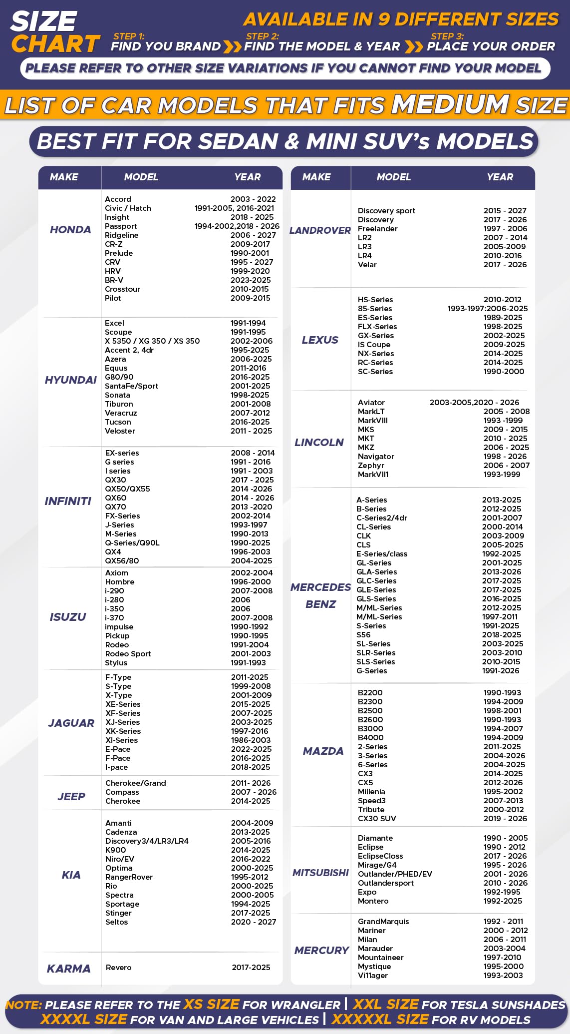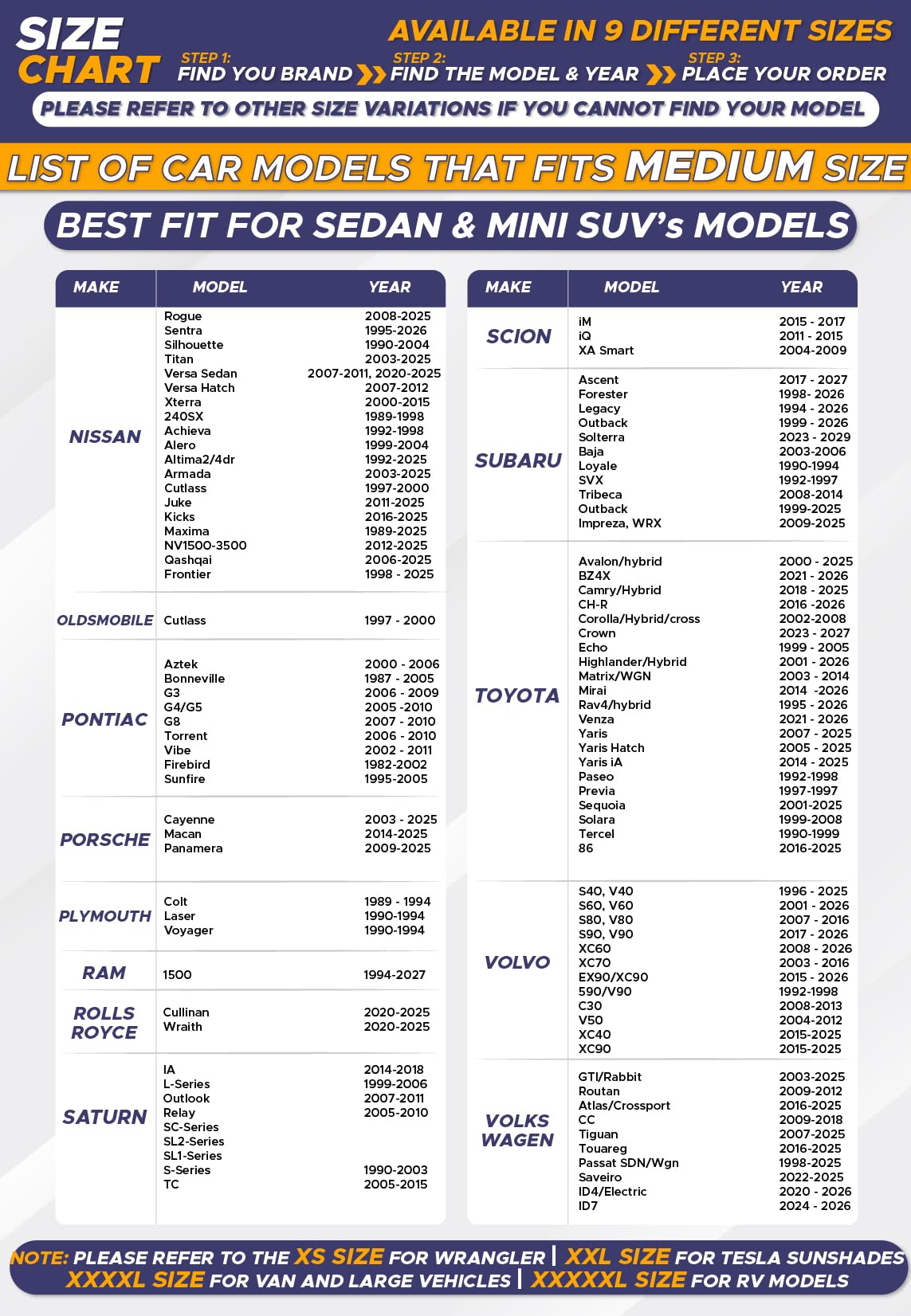 • Choose the Right Fit: Available in multiple sizes, EcoNour’s shades for windows are tailored to fit various vehicle models. Refer to the size chart to pick the best car window shade for maximum protection.