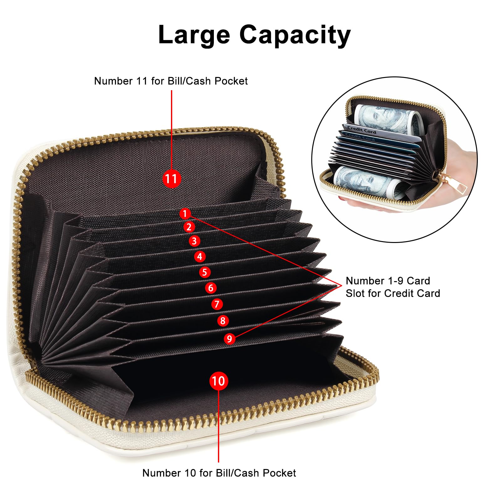 • 【Easy to Carry and Use】: This practical compact credit card wallet fits easily into your pocket or bag. Accordion slots keep your cards organized and easy to access, the zippered design keeps your cards and money safe