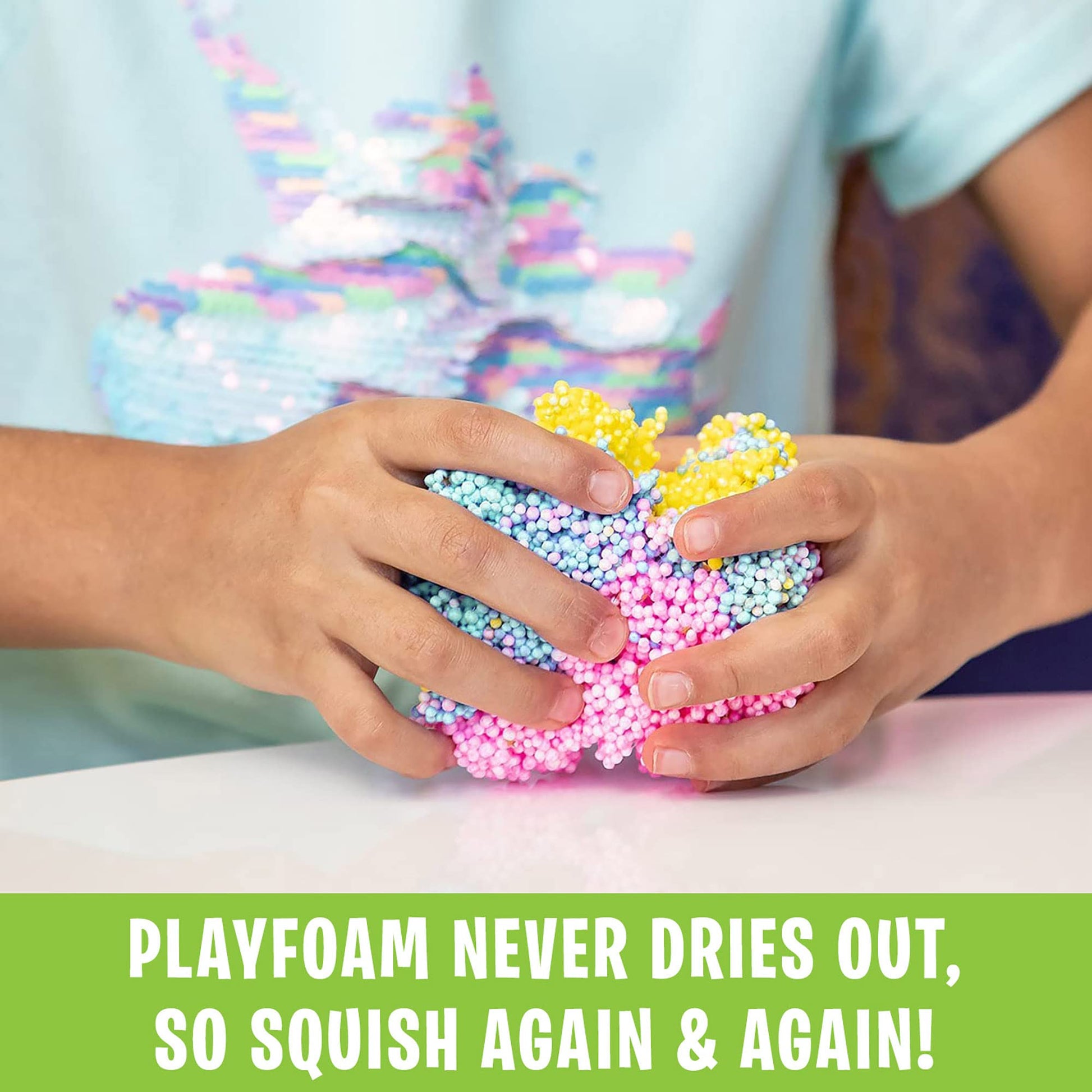 Details: Make some Playfoam magic with Playfoam Pals Unicorn Magic collectibles! Each set includes squishy, squashy, heart studded Playfoam; a mystery unicorn charm; a mystery-colored locket with surprise clip shape; a mystery decorative gem; and a collector’s guide. Pop open the rainbow to reveal the heart-studded Playfoam and the four magical Playfoam collectibles hiding inside – then use the Playfoam to create clouds, perches, and other play props perfect for pretend play fun. Non-toxic Playfoam never dries out so the fantastical fun never ends – plus its super for sensory play!