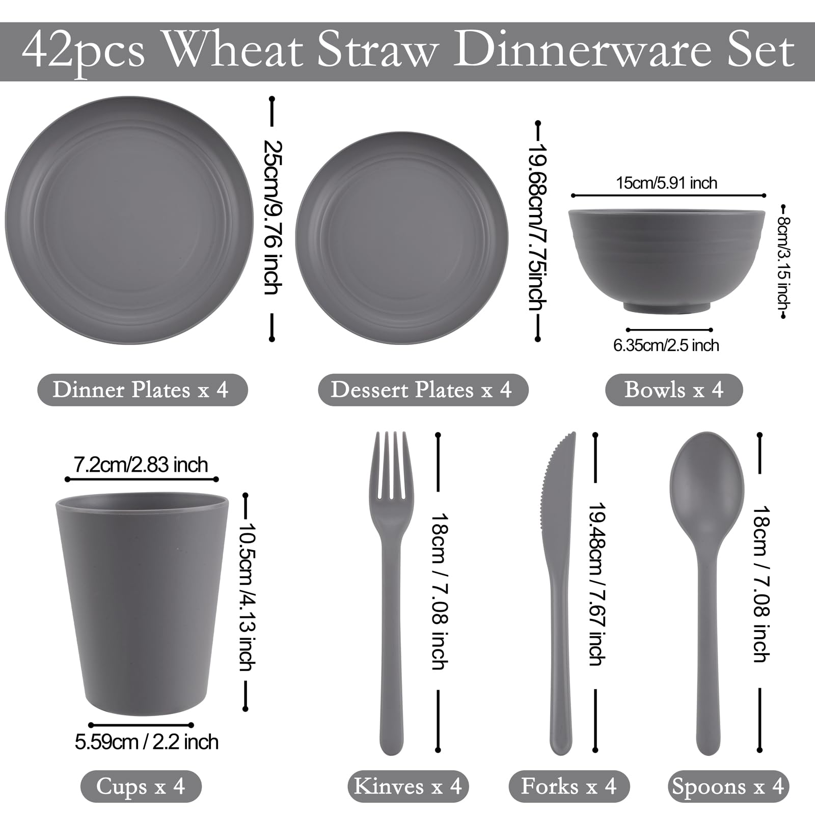 EI 42pcs Wheat Straw Dinnerware Set,Reusable Plastic Plates Unbreakable,Plates and Bowls Sets for College Dorm Room,Camping,Picninc,Halloween