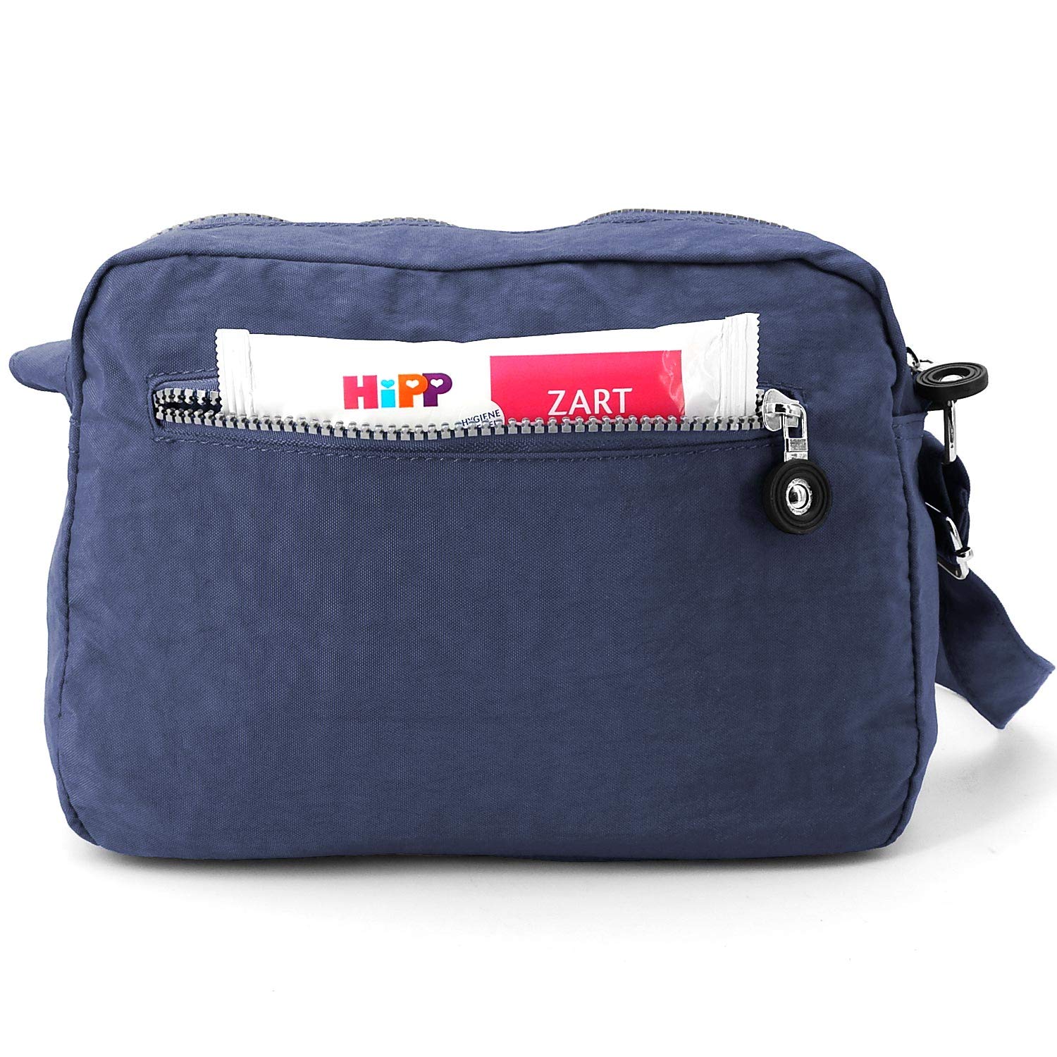 It can be worn over the shoulder thanks to the infinitely adjustable shoulder strap, crossover or over the shoulder.