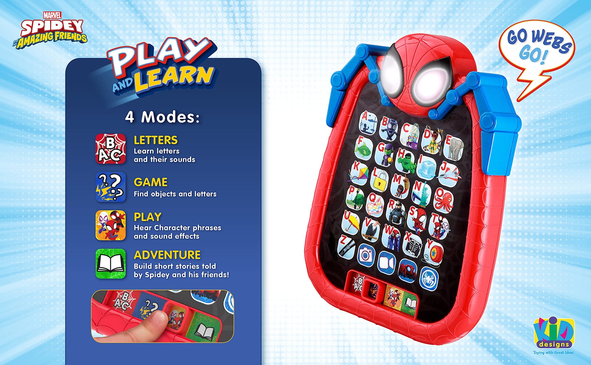 • Tablet for Kids: Spidey themed tablet for kids includes 4 game modes (Letters, Game, Play and Adventure) packed with toddler activities. Educational toys like this kids learning tablet make great travel games during road trips, airplane rides, and more!