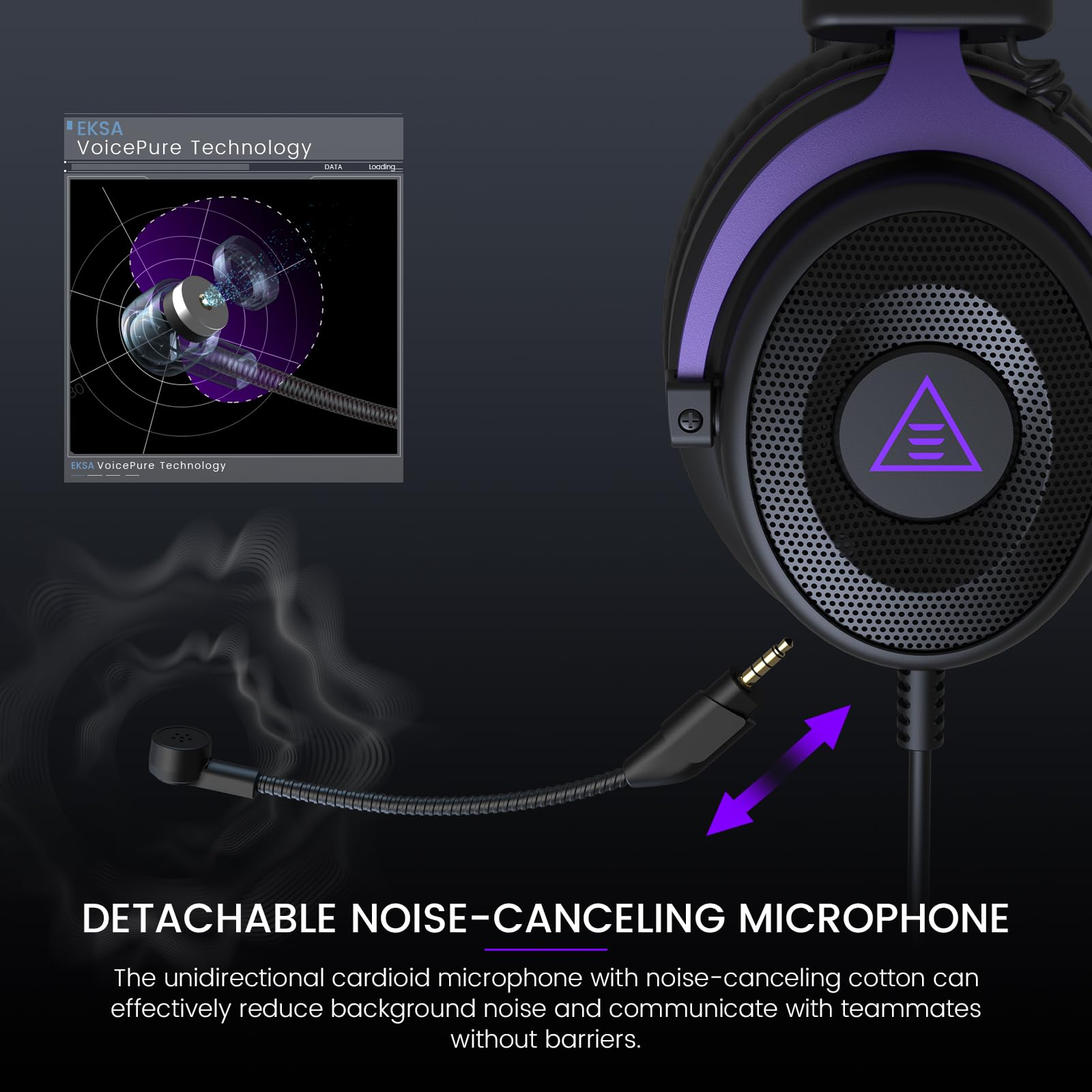 EKSA E900 Headset with Microphone for PC, PS4,PS5, Xbox - Detachable Noise Canceling Mic, 3D Surround Sound, Wired Headphone for Gaming, Computer, Laptop, 3.5MM Jack