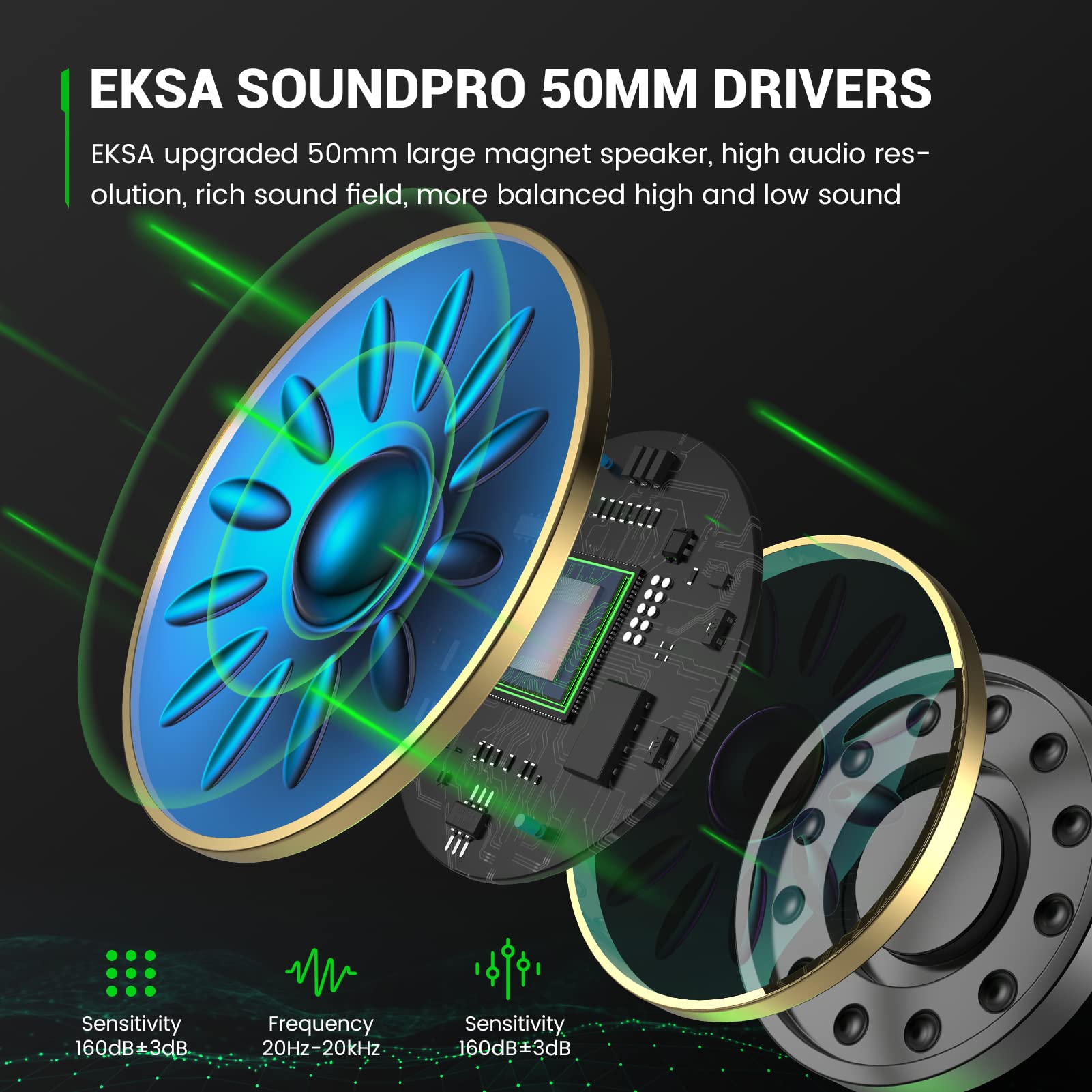 • 【Clear Powerful Sound】The EKSA stereo gaming headphone is designed for gamers looking for an edge. Its 50 mm drivers bring you superior sound clarity and deep, punchy bass to give you every advantage in your game. Every sound detail is heard when gaming, from the footsteps of enemies creeping up behind you to the triumphant roar of your character when you win.