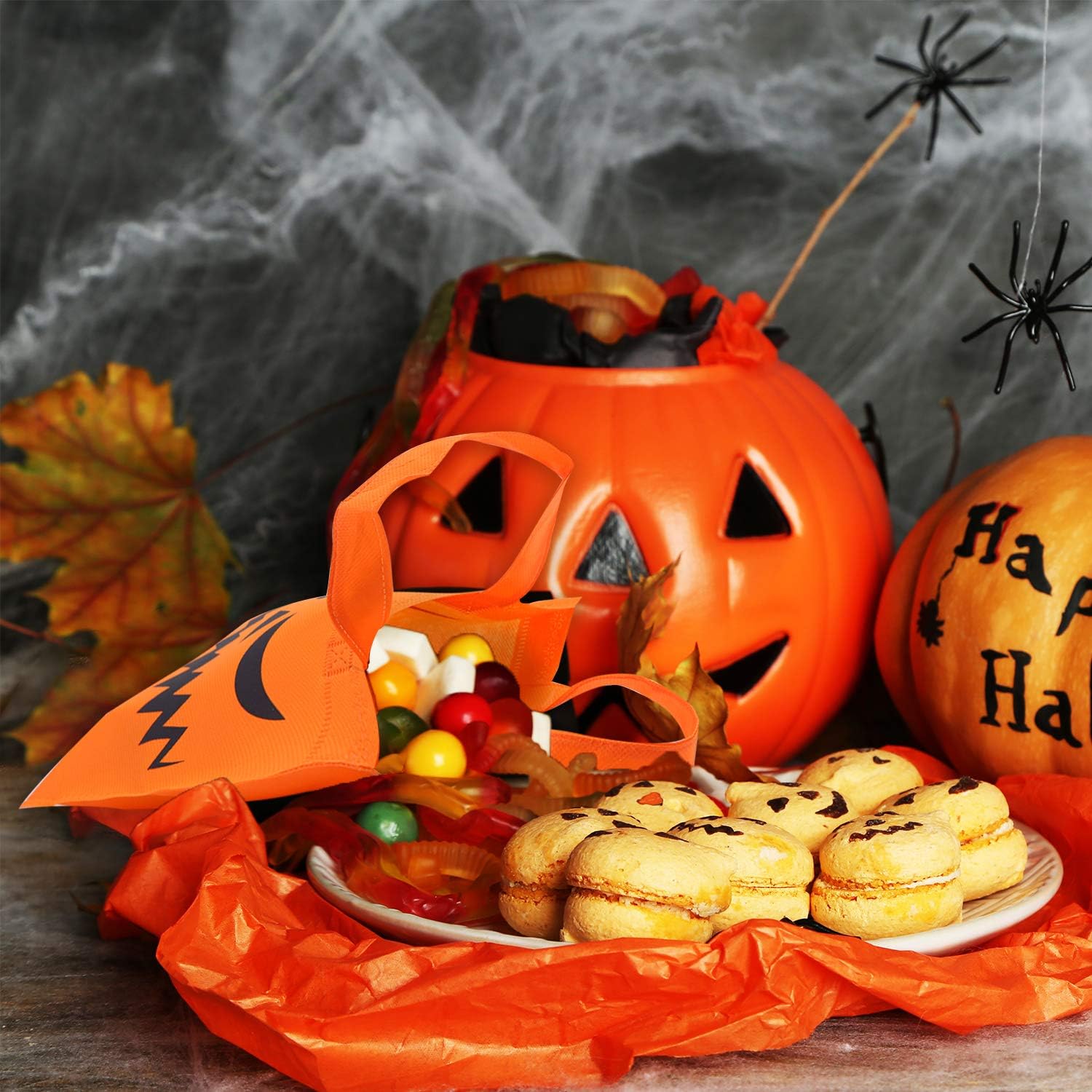 Elcoho 30 Packs Halloween Trick or Treat Non-woven Bags Pumpkin Bag Party Goody Tote Bags Gift Bag (Orange)