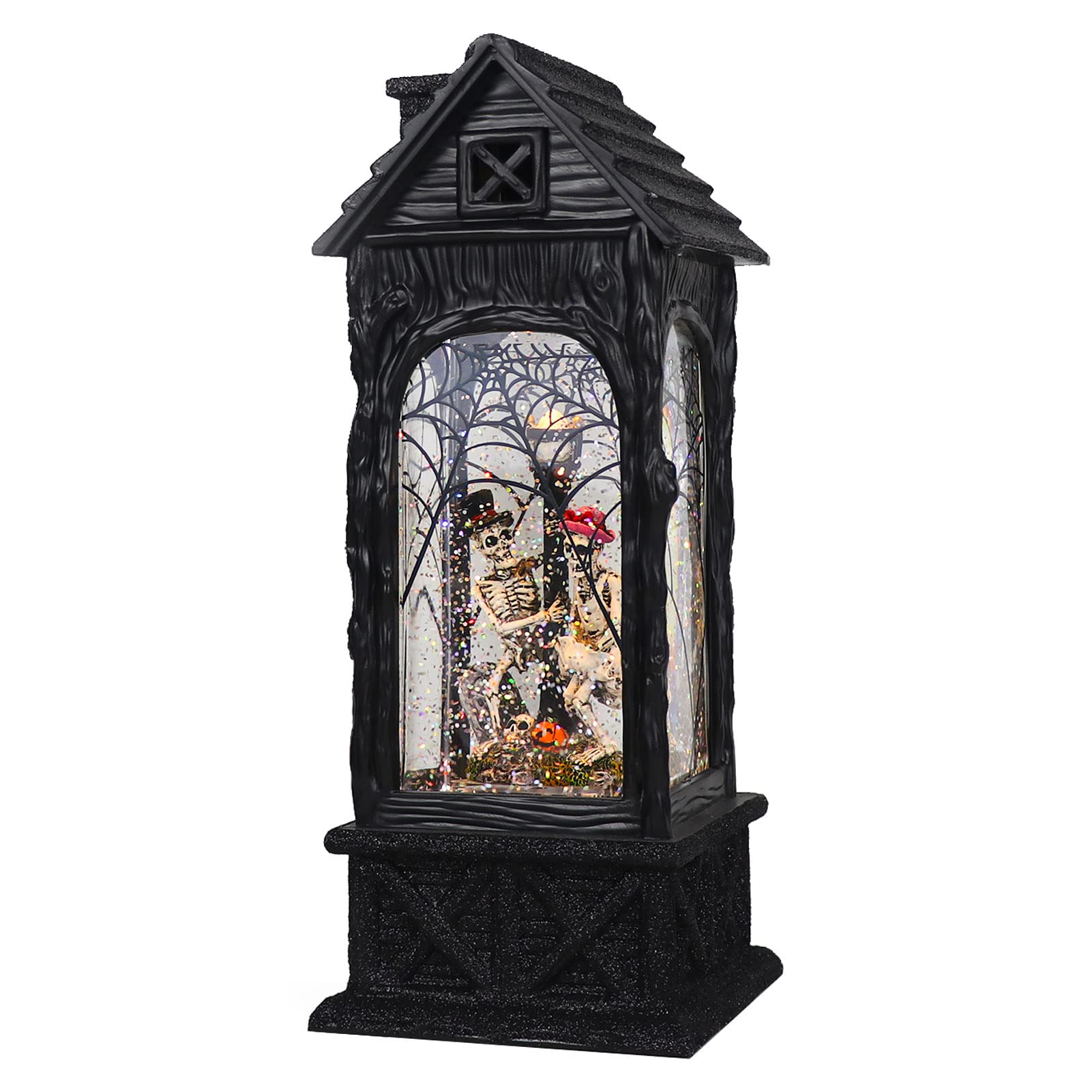 • WHAT YOU WILL GET: You will get 1 pcs Water Snow Globe Lantern in black color finish, which can be operated by USB cord (included) or 3 AA batteries( not included). Product dimension is 4.3' x 4.3' x 10.7'