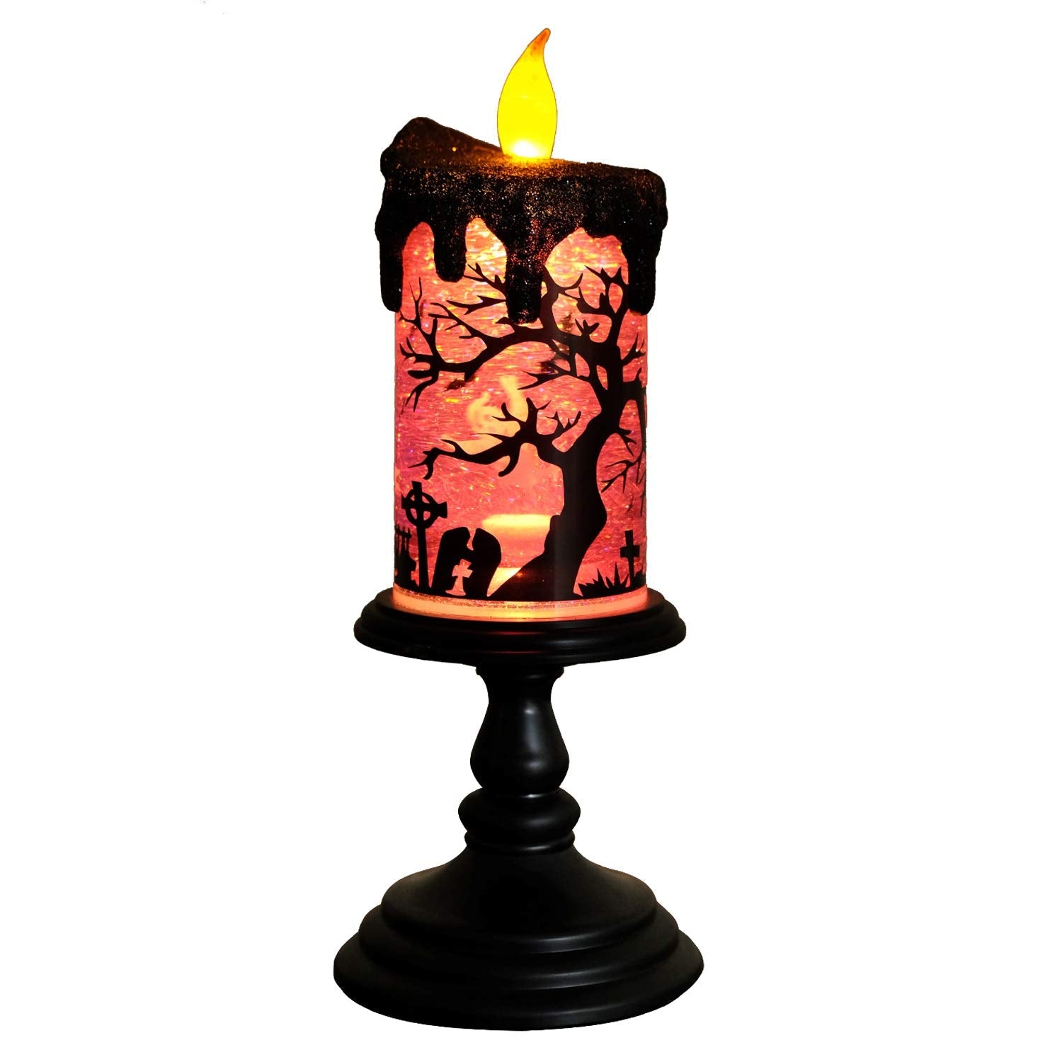 • CREATIVE DESIGN: Unlike traditional flameless candles, this lighted snow globe candle powered by 3 AA batteries and built-in motor swirl the water like the GHOST spinning around the candle. A great addition to your indoor Halloween decoration