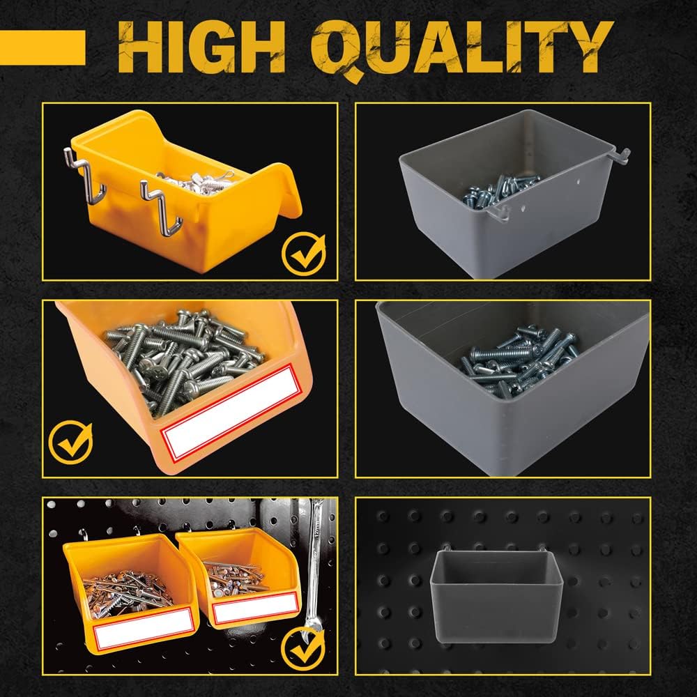 • Garage Organization includes 260 pieces of pegboard hooks in 17 different types. Plastic Bins Hooks Ring Tool Holder Multi-Tool Rack Pliers Holders Curved pegboard hooks siding hooks shelf pegs