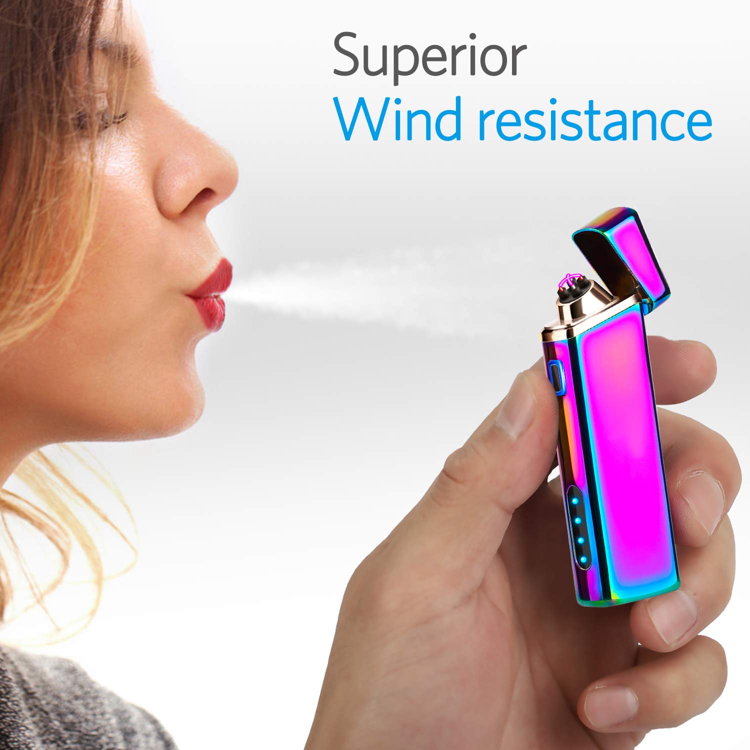 Electric Arc Windproof Plasma Lighter - USB Rechargeable, Upgraded Battery Indicator - Multichrome