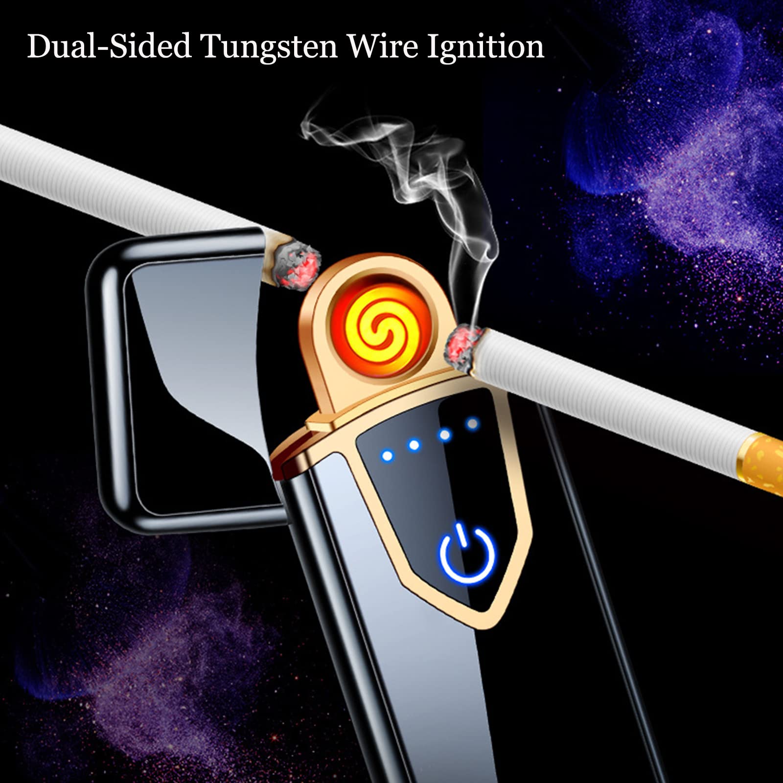 Electronic Lighter, Electric USB Lighter Windproof Rechargeable Slim Coil Lighter with Smart Fingerprint Sensor Double Side Ignition,Creative Power Indicator Flameless Boyfriends Gifts(Gold)