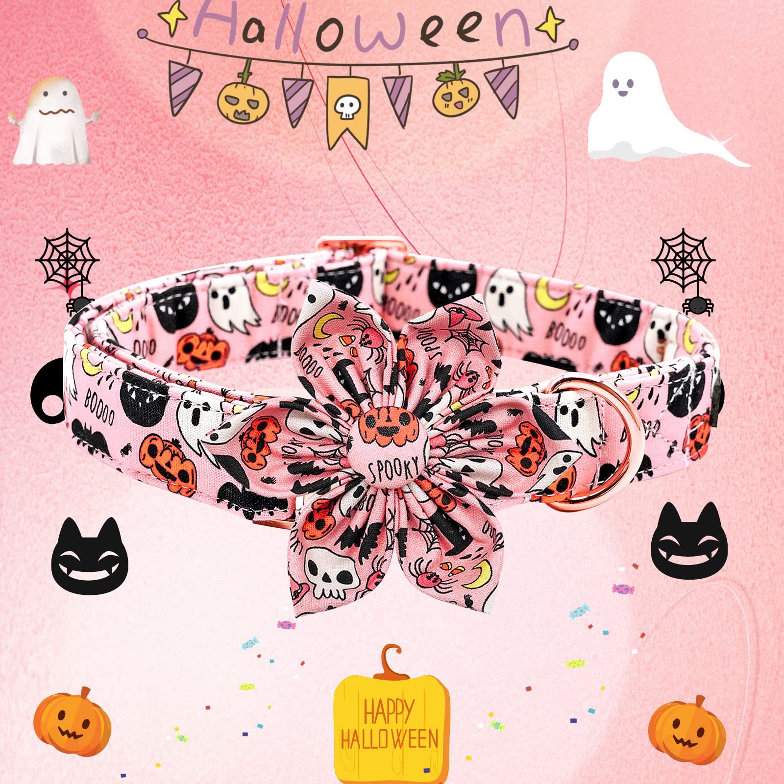 Elegant little tail Dog Collar with Flower, Fall Dog Collar Halloween Pumpkin Flower Collar Dog Girl Pet Collar Dog Collars for Large Dog