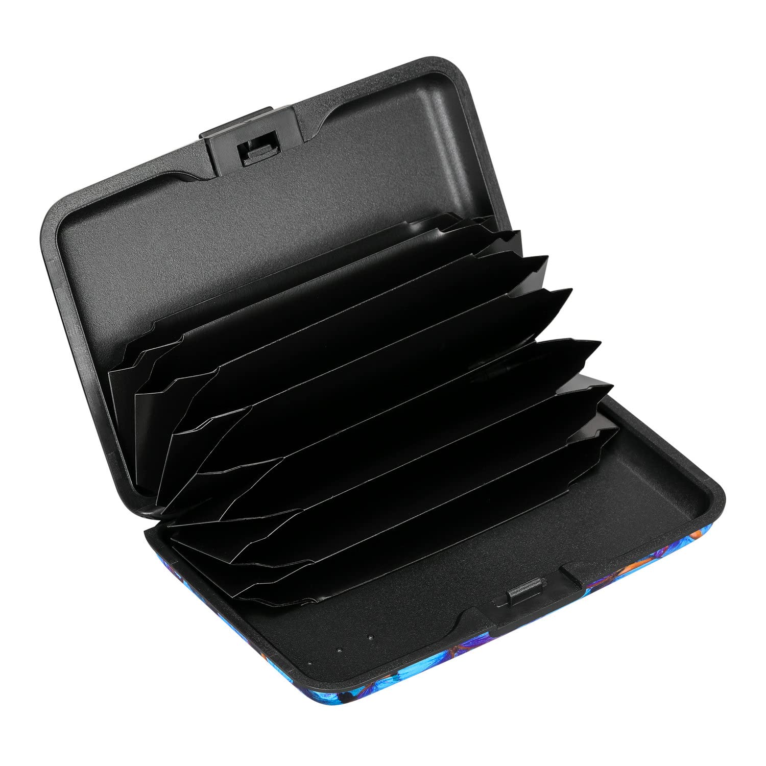 • This credit card holder is made of aluminum shells, ABS plastic frame and clasp closure, RFID-blocking will protect your card data from RFID scanners and readers.