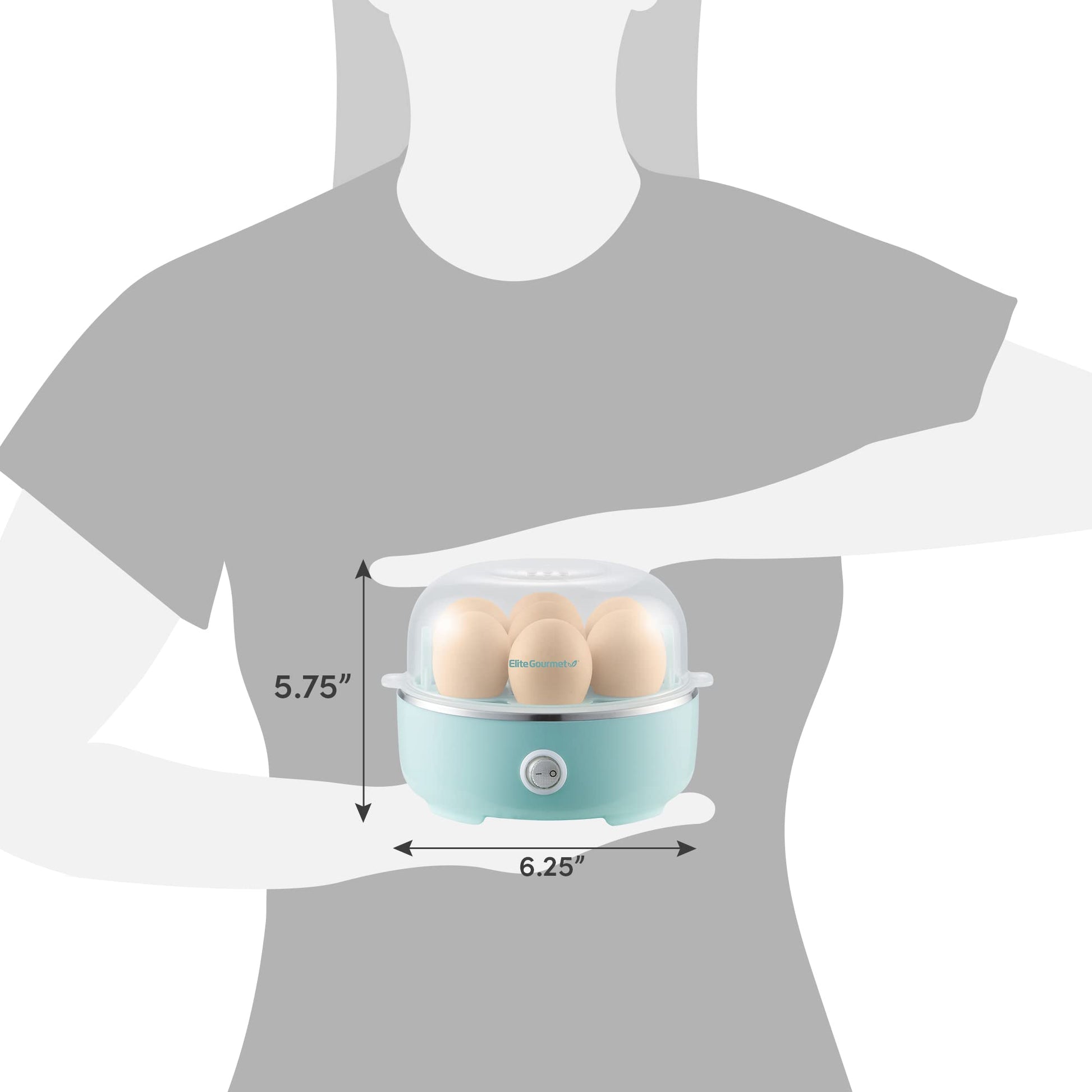 Details: The Elite Gourmet Automatic Easy Egg Cooker cooks up to 7 eggs at one time. Eliminate the guesswork of stovetop boiling by using the included, pre-marked measuring cup which allows you to add the exact amount of water to consistently prepare eggs to your desired style, soft medium or hard boiled. The convenient automatic shut-off indicator light lets you know exactly when the cooking cycle is complete. The built-in timer adjusts automatically from soft to hard and cooks eggs exactly to your liking! The measuring cup has a built-in piercing pin to pierce the egg shell and prevent cracking during cooking. This also releases the sulfur within the egg which results in consistently perfect, golden yellow yolks. Prepare quick and healthy breakfast meals or even just snacks for the whole family! Designed to make busy mornings easier and to save you time & money. The Elite Gourmet Easy Egg Cooker can quickly boil eggs in the morning while you are brushing your teeth! Just add eggs & water then press the power button and within minutes your eggs will be ready! After cooking, use the egg tray handles to hold the egg tray under cold water to rinse and cool down if you need to peel them right away. Pair your boiled eggs with toast and avocado for a hearty breakfast or brunch. Prepare deviled eggs for you, two or the office potluck. Included with your purchase: Egg Cooker Base, (dishwasher safe parts include 7 egg tray, clear lid and measuring cup with piercing pin). Also included with the Instruction Manual are 16 delicious recipes. Do not use outdoors.