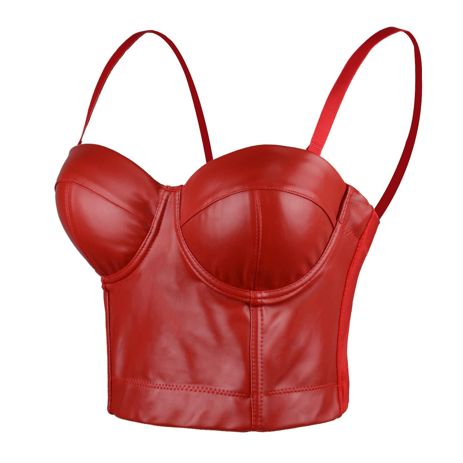 ELLACCI Faux Leather Bustier Crop Top Gothic Women's Corset Top Bra Red Small
