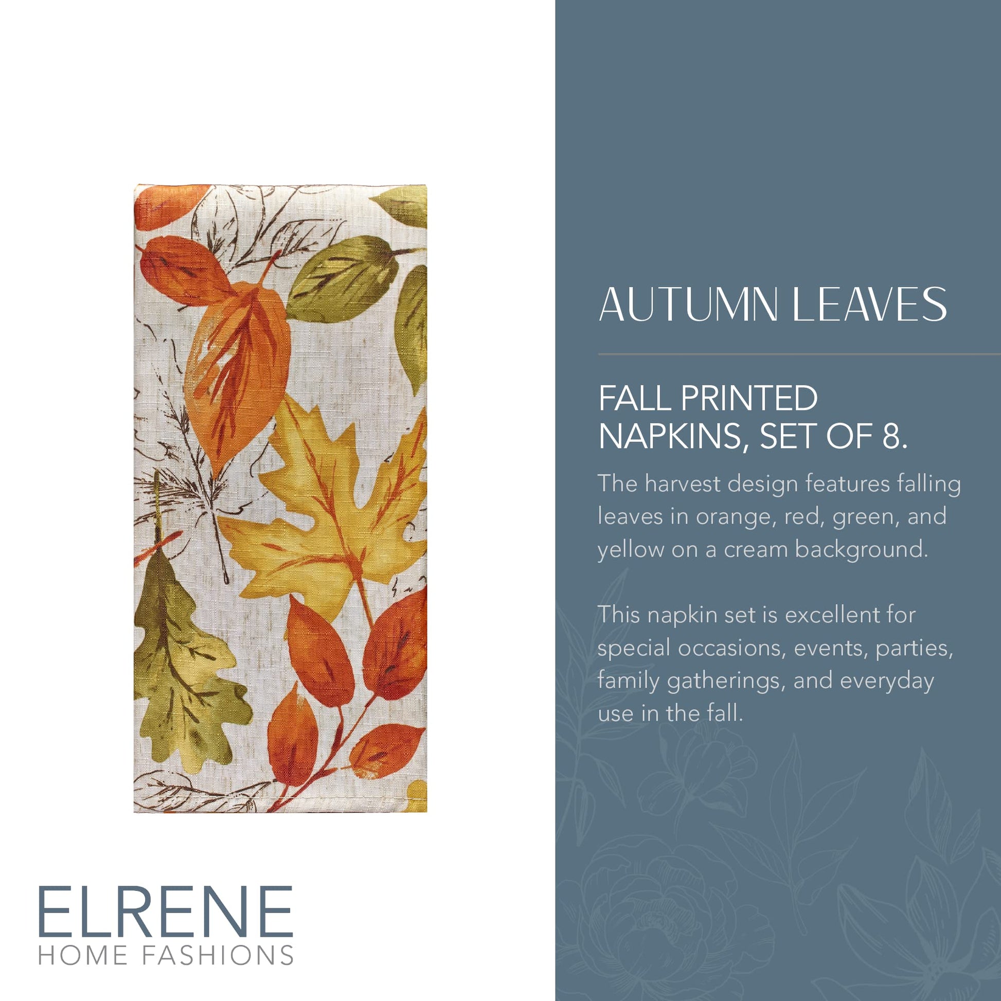 Elrene Home Fashions Autumn Leaves Printed Fall Cloth Dinner Napkins, 17" x 17", Set of 8
