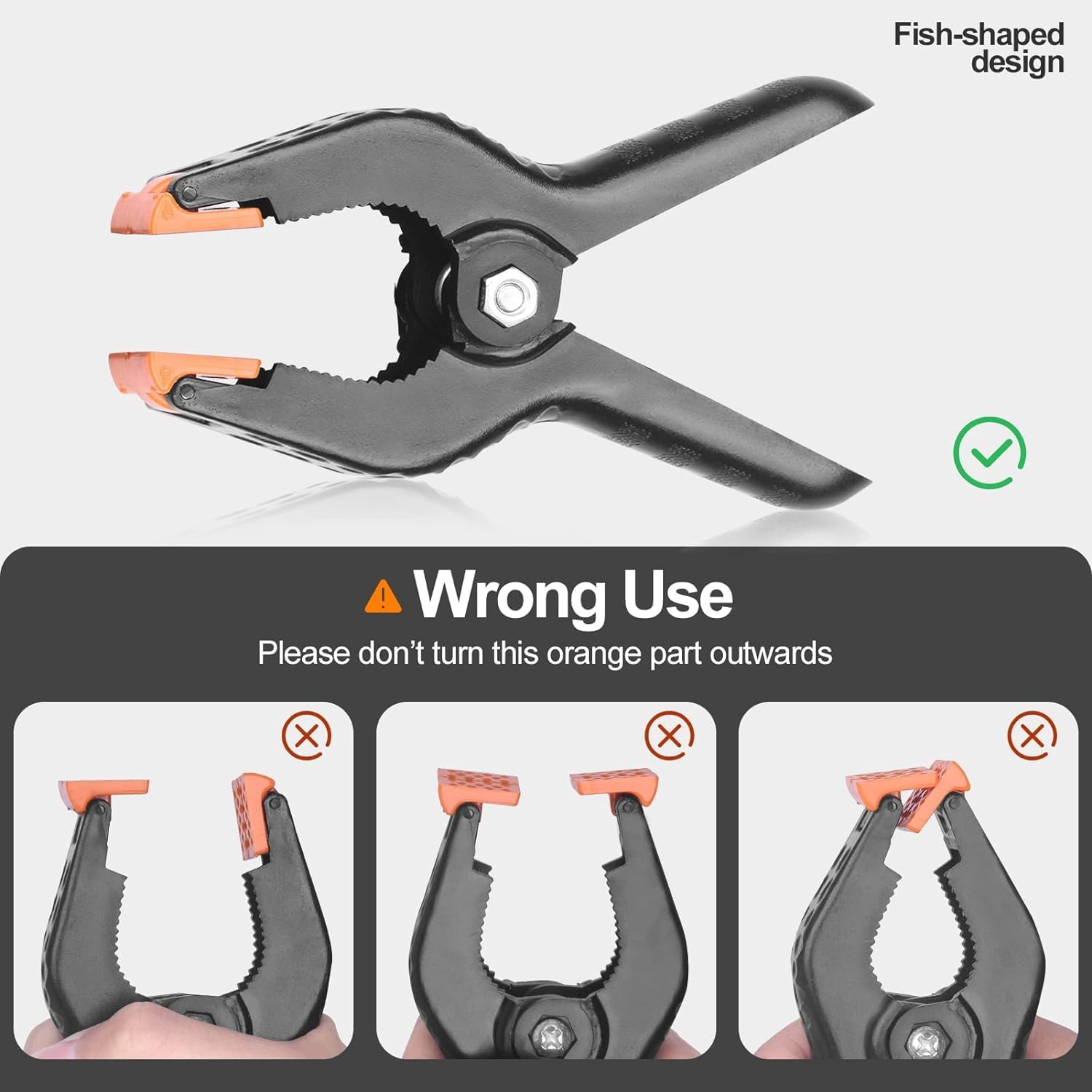 • 【Suitable Jaw Opening】: All spring clamps can be maximumly opened to 2 inch between the inside edges of the clamp.