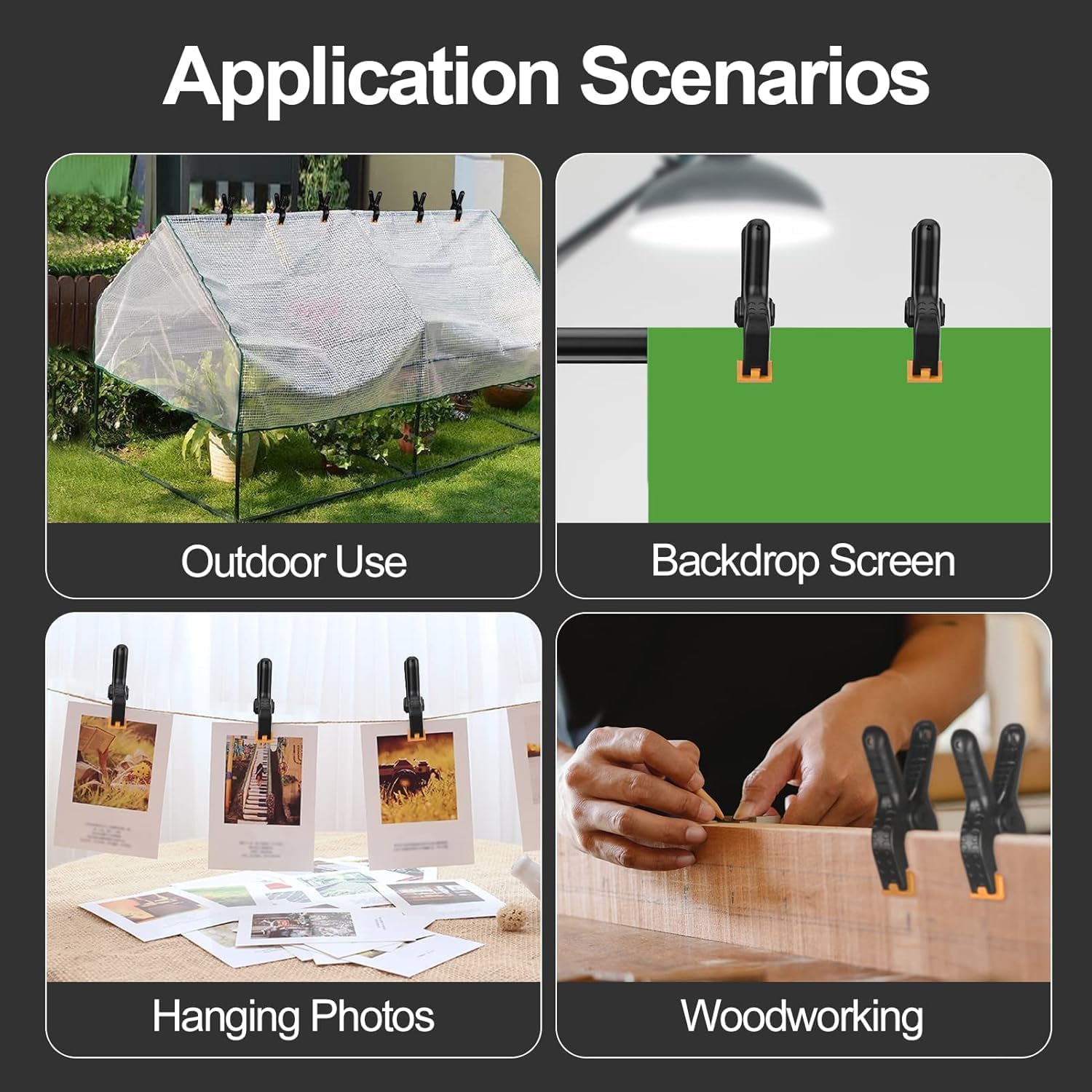 • 【High Strength】: With a strength of 10 pounds, our heavy duty spring clamps hold things in place tightly. It’s helpful for your DIY projects like photography, background, carpentry, etc.