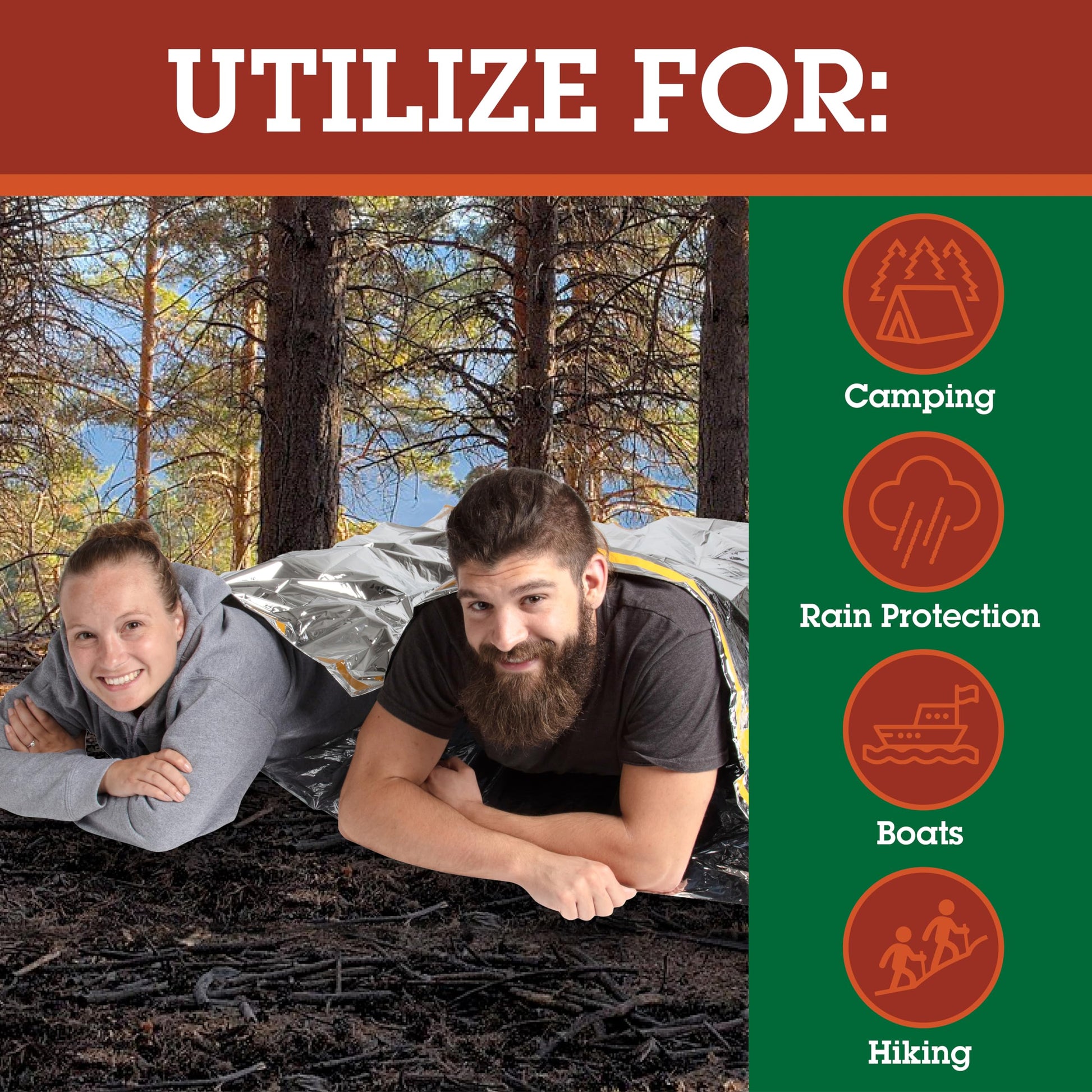 Emergency Thermal Mylar 2 Person Sleeping Bags- 1 Pack -Ultra Compact for Camping, Survival, Disaster Bivouac Shelter- Pocket Sized, 7.25ft x 5.25ft - Retains 90% of Body Heat and Repels Wind & Water