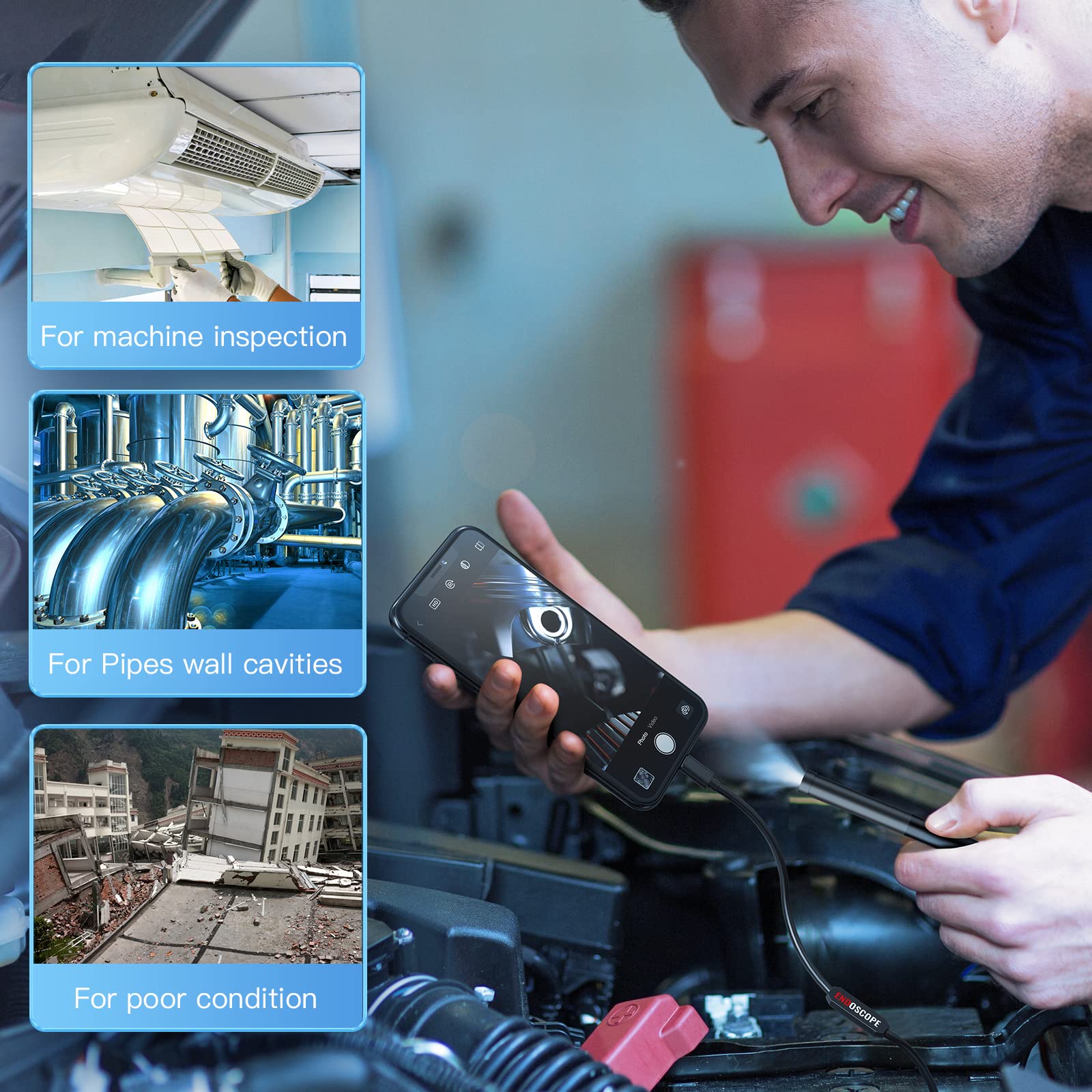 • Multipurpose Gadget for Every Task: Endoscope is suitable for various scenes, such as inside the car or around the engine, inside the pipe inspection, or the house inspection mold, and wiring.Built-in 6 LED lights with adjustable brightness, this pipe camera can also capture the best images even in the dim areas