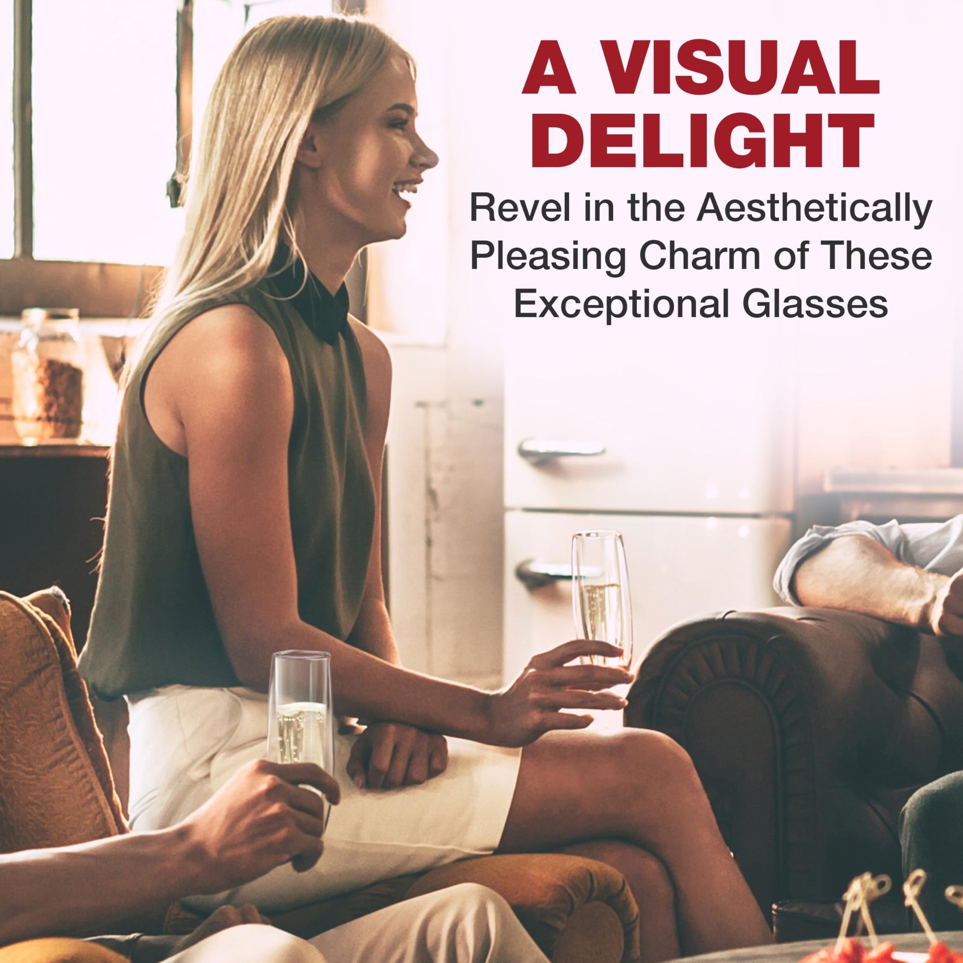• Elegant Double Wall Insulation: These stemless double wall champagne flutes maintain drink temperature and prevent condensation. Durable and stylish, they are ideal glass champagne flutes for serving champagne, prosecco, or sparkling wine.