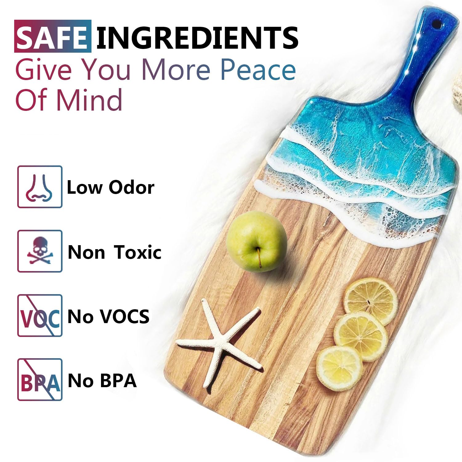 • 【Safest & Easy To Use】Our food safe epoxy resin is made from non-toxic ingredients with no harsh chemicals and is 100% safe for indoor and outdoor use. Two part epoxy use a simple 1:1 volume mixing ratio, so you can easily measure the correct amount each time.