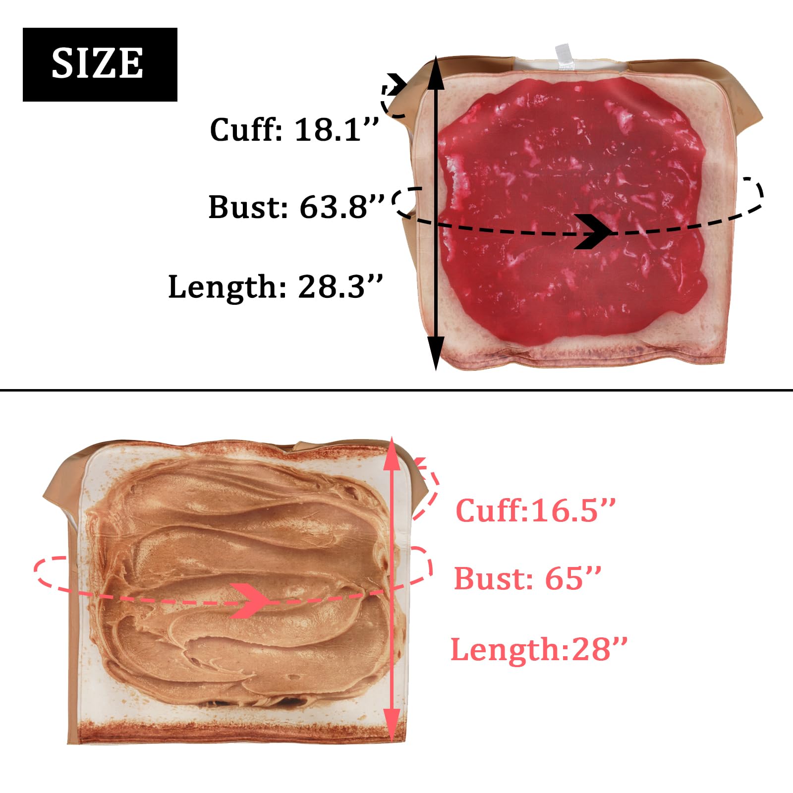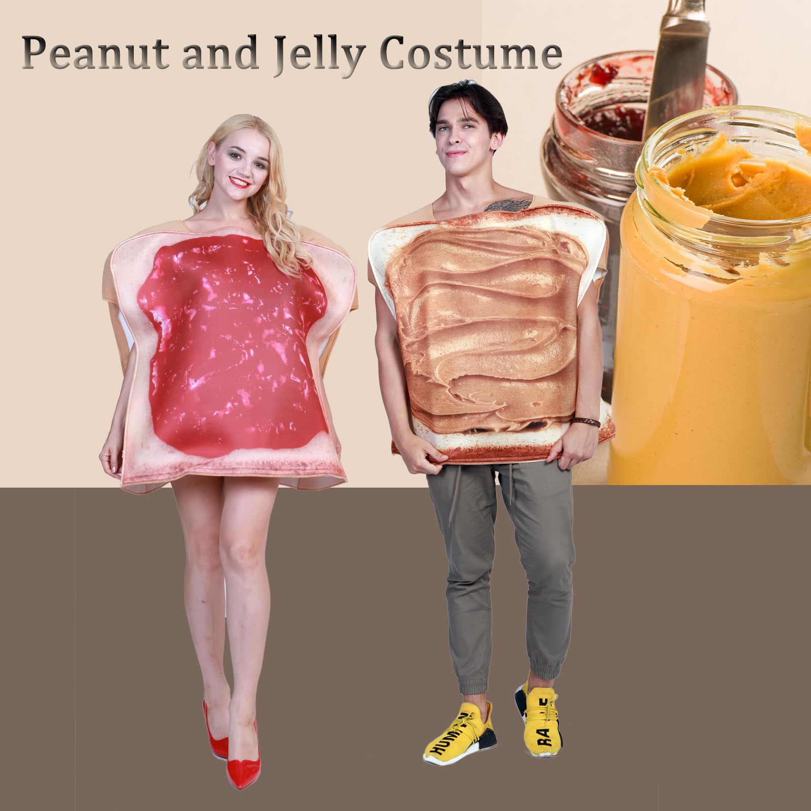 • The Peanut Butter and Jelly Costume is a fun and unique way to show off your love for the classic sandwich. The costume includes two full-body suits, one for each person, that is designed to look like a classic peanut butter and jelly sandwich.