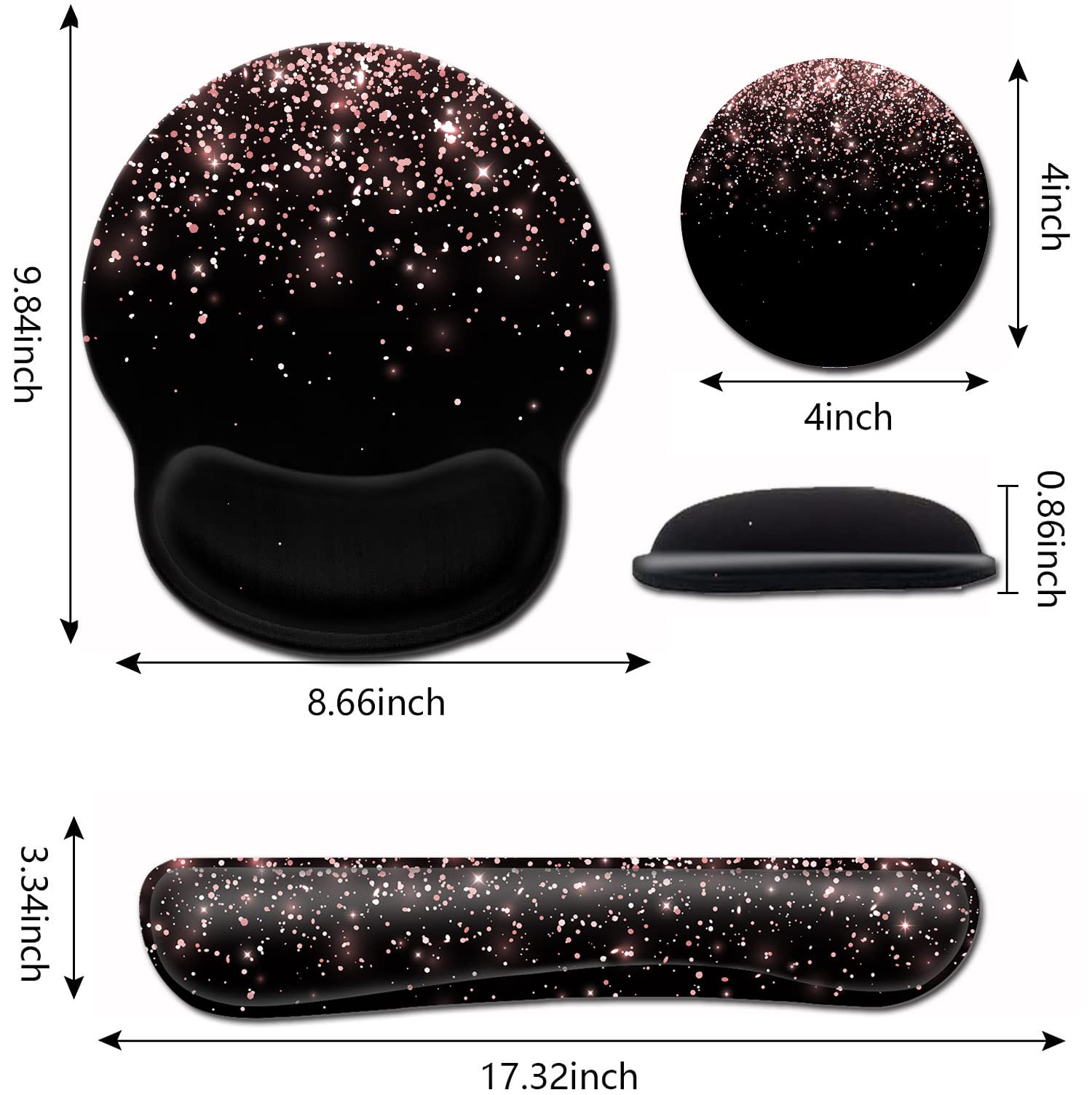 Ergonomic Gel Mouse Pad with Wrist Support - Soft Memory Foam Keyboard Rest, Dirt-Resistant, Suitable for Office Typing & Gaming, Rose Gold Glitter Pattern
