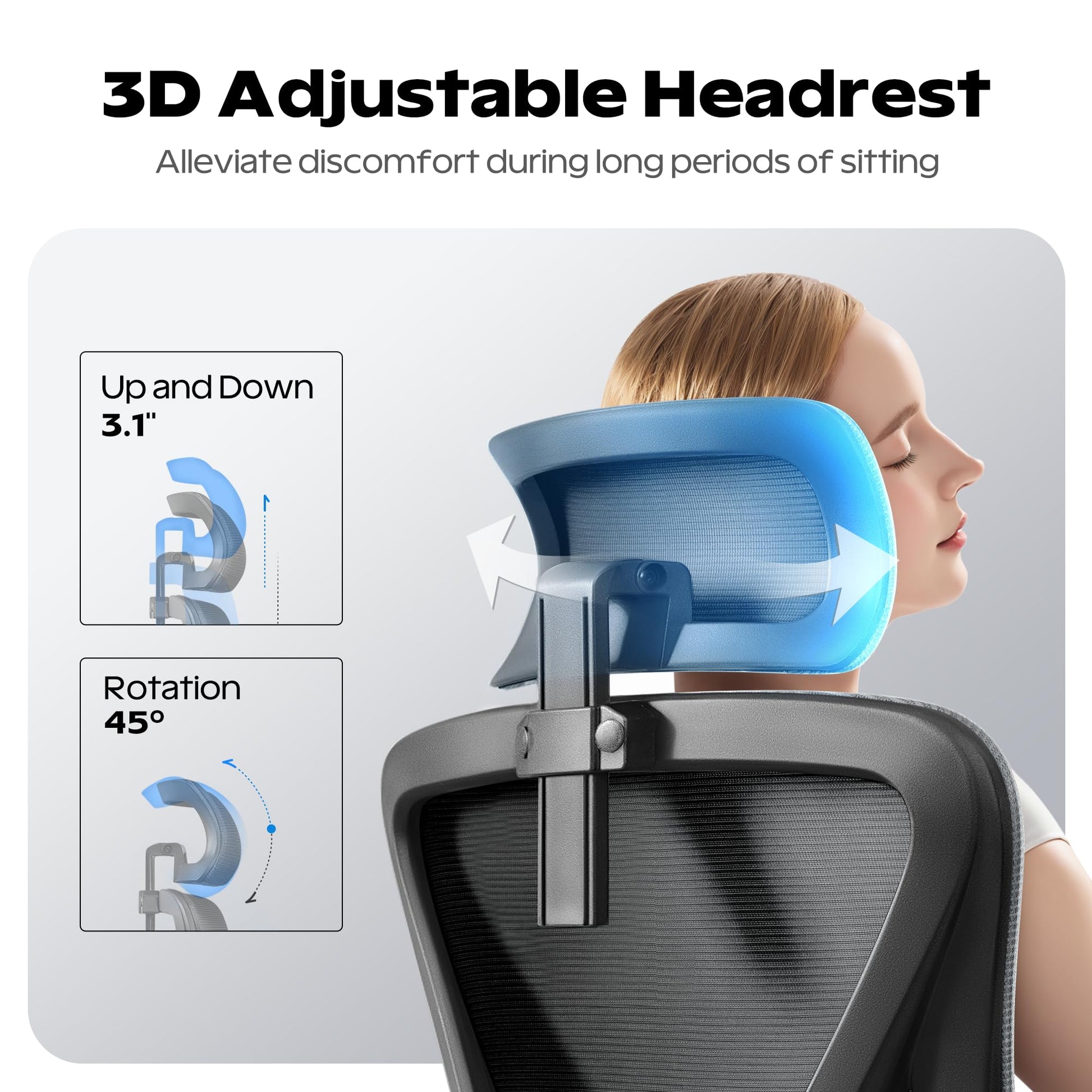 • [Adjustable Headrest and Lumbar Support] Featured by a practical headrest that can be adjusted to different heights and angles, providing support for head and neck, reducing strain during long work hours. The adjustable lumbar support offer the right support, alleviating lower back pain associated with prolonged sitting;