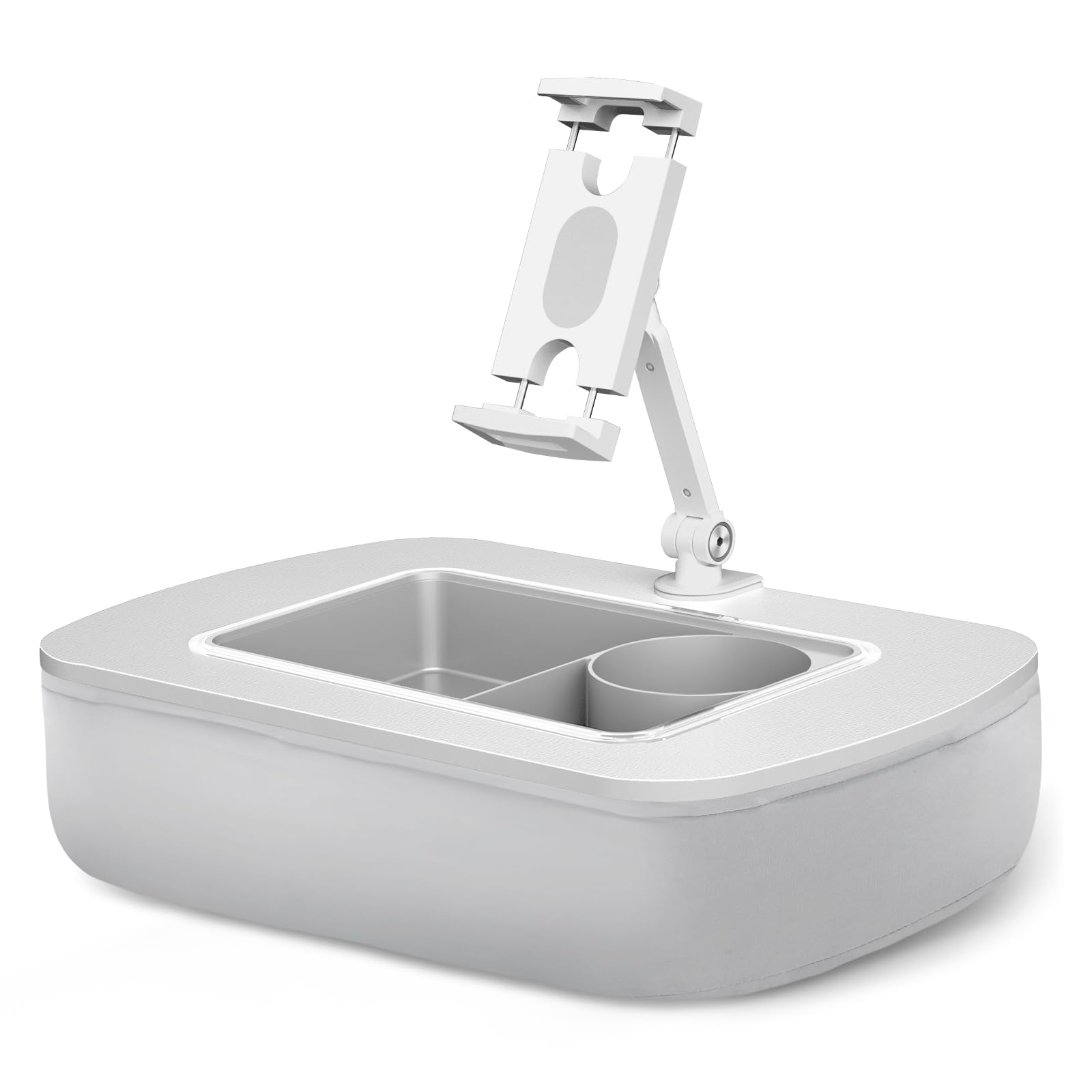 ERGONOV Tablet Stand Pillow with Snack Bowl, iPad Lap Holder for Hands-Free Reading and Relaxation on Bed,Couch,Recliner, 360° Rotating Clip for 4.7-13" Kindle,eBook,Tablet,iPhone (Light Gray)