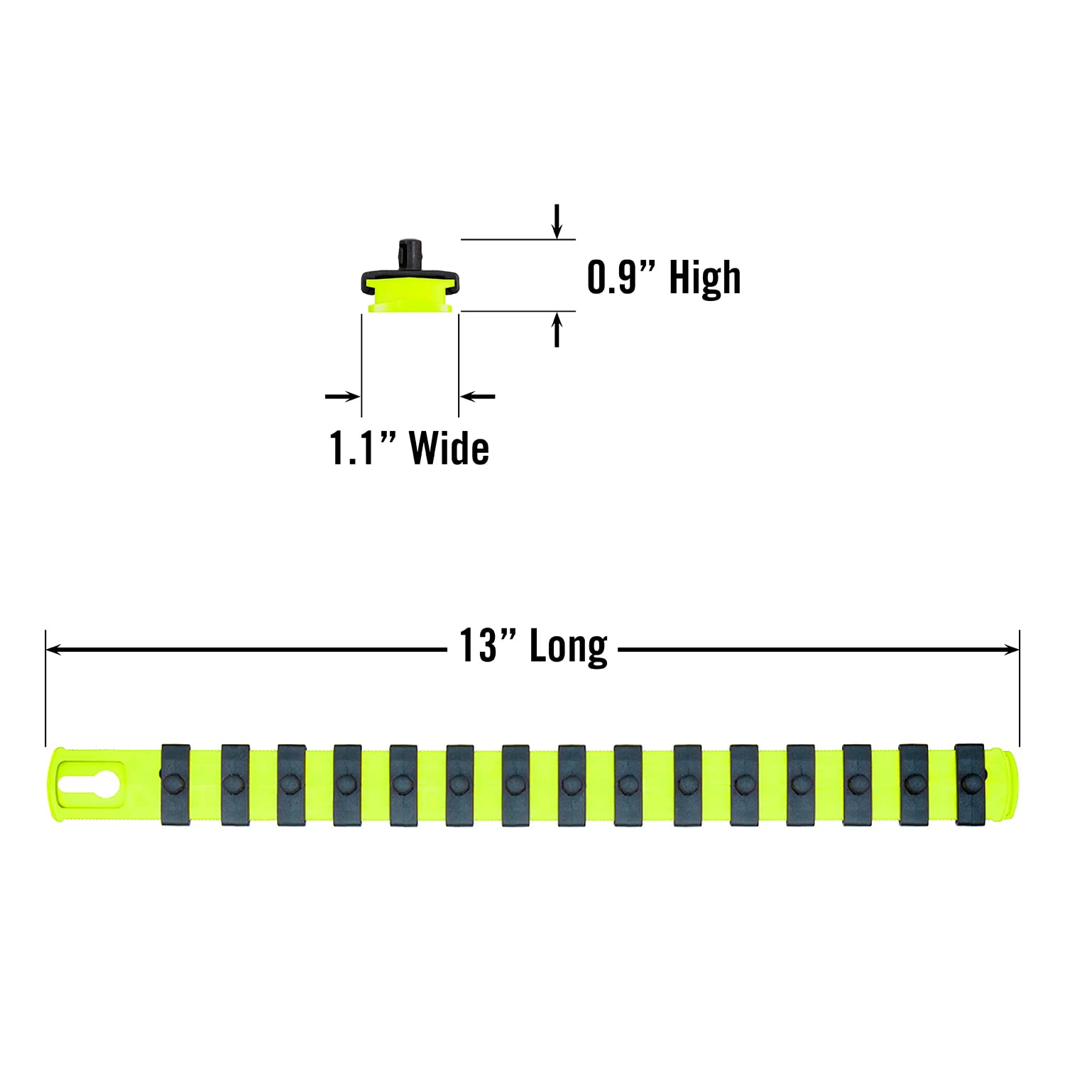 ERNST 13-Inch Socket Rail Organizer with 15 1/4-Inch Twist Lock Clips, High Visibility (8437HV)