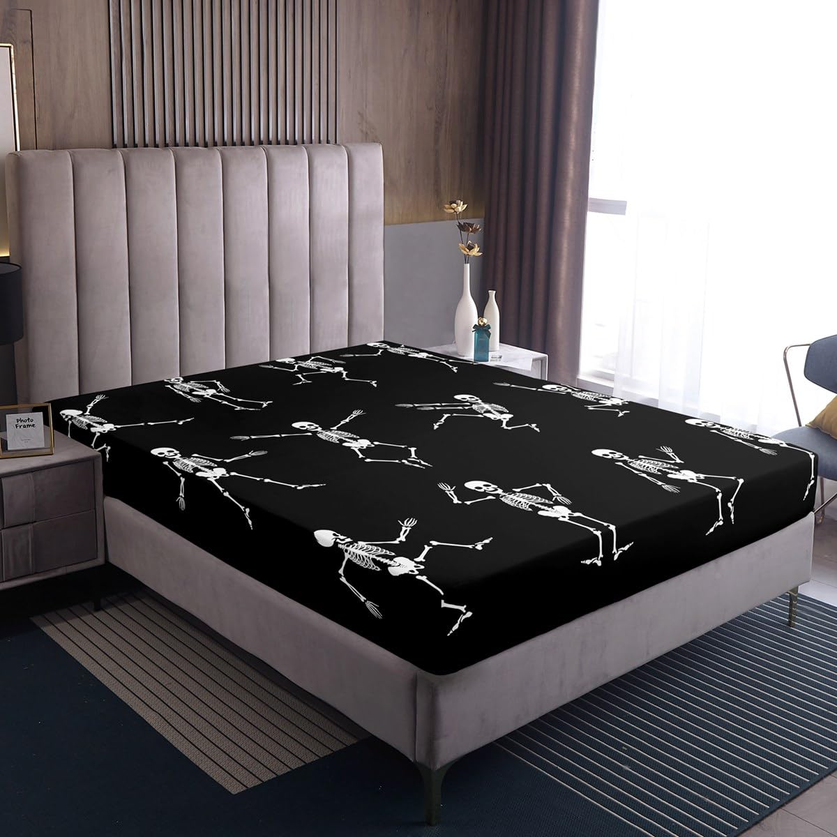 Erosebridal Sugar Skull Sheet Set Twin Size Skeleton Bones Bedding Set for Kids Boys Girls Teens Adult Halloween Horror Theme Fitted Sheet Gothic Spooky Bed Sheet Wrinkle Bedclothes(No Flat Sheet)