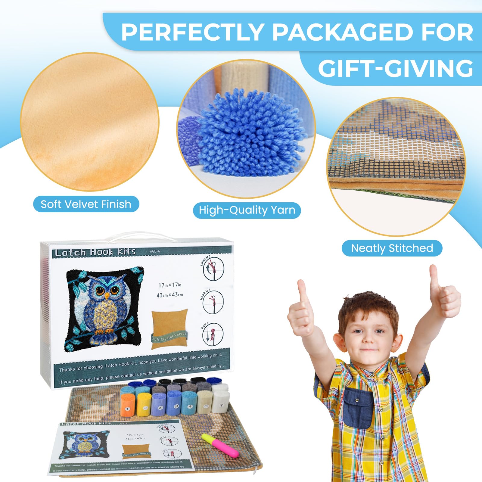 • Versatile Home Use: This DIY latch hook pillow kit is wonderful for creating a decorative cushion for your sofa, chair, or bed. Its vibrant Full Moon Owl design adds a stylish and cozy accent to any space.