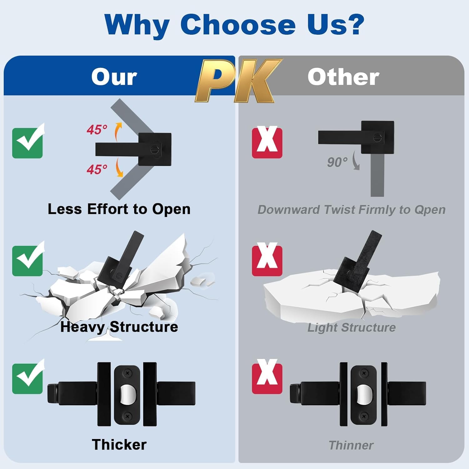 • 【Easy Installation of Handlesets】The package comes with all the accessories as well as the punching instructions,you only need a screwdriver to quickly complete the installation. Note: Each of handle is packaged separately to avoid scratches caused by collisions during transit(the black door lever fits 1.38' to 1.78' doors, and the latch plate is unremovable). Please CHECK the size of the handle and all accessories carefully before purchasing