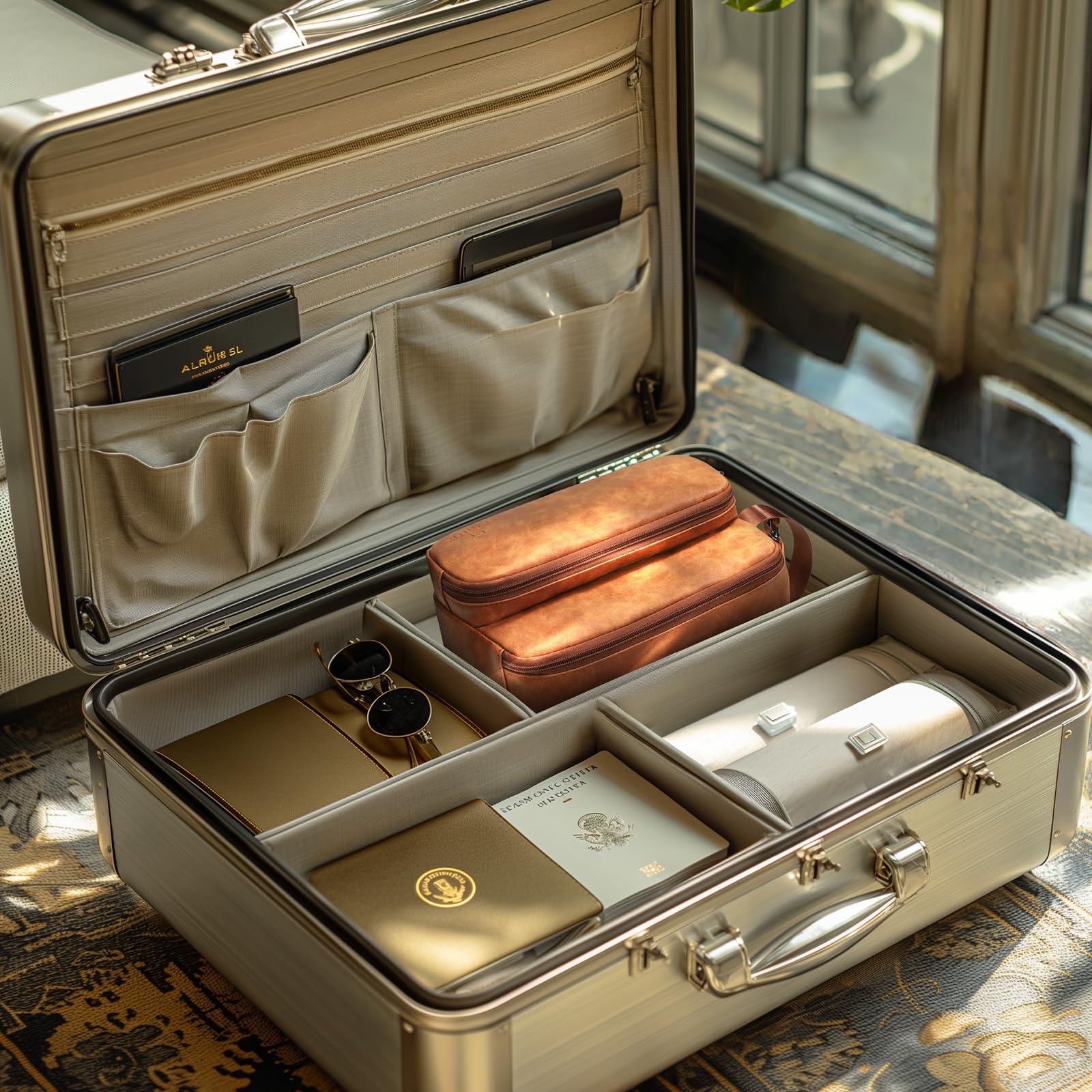 • Large Capacity: With a spacious main compartment and elastic straps, our travel toiletry bag for men securely holds bottles upright, preventing spills during transportation. The multiple pockets inside keep all your shaving supplies and toiletries organized.