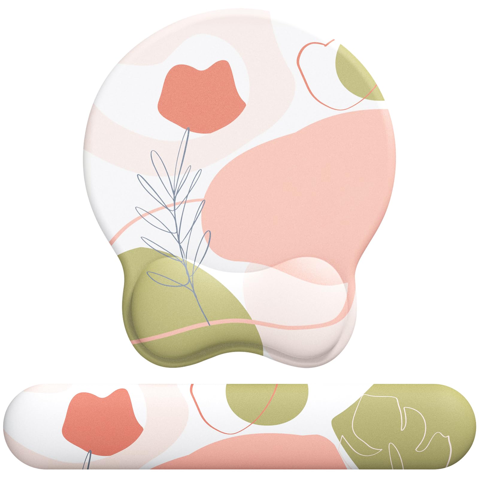 eulps Mouse Pad Wrist Support, Ergonomic Memory Foam Keyboard Wrist Pad & Gel Wrist Rest Set for Computer Keyboard for Easy Typing & Pain Relief for Office & Home (Rose Set)