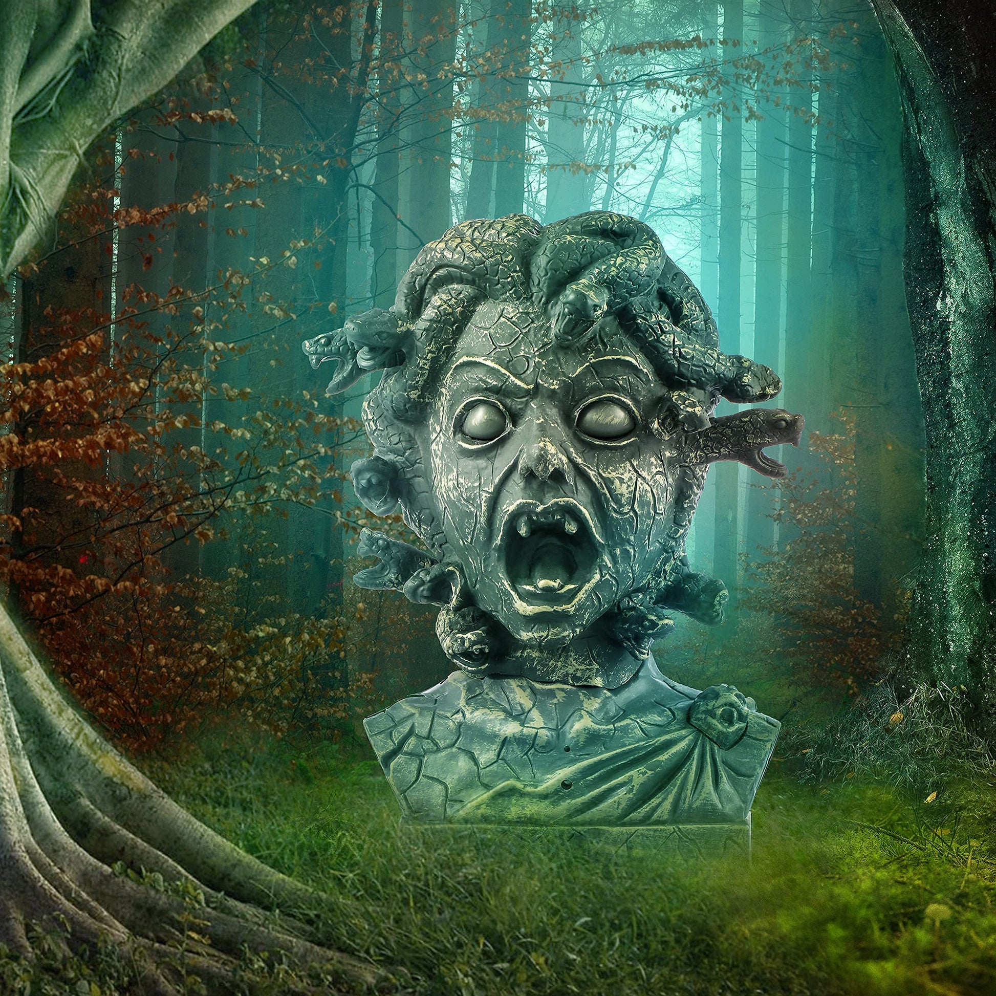 EVAPLUS 12 inch Electronic Animated Medusa Bust,Indoor/Outdoor Halloween Decoration,Creepy Tabletop Decor