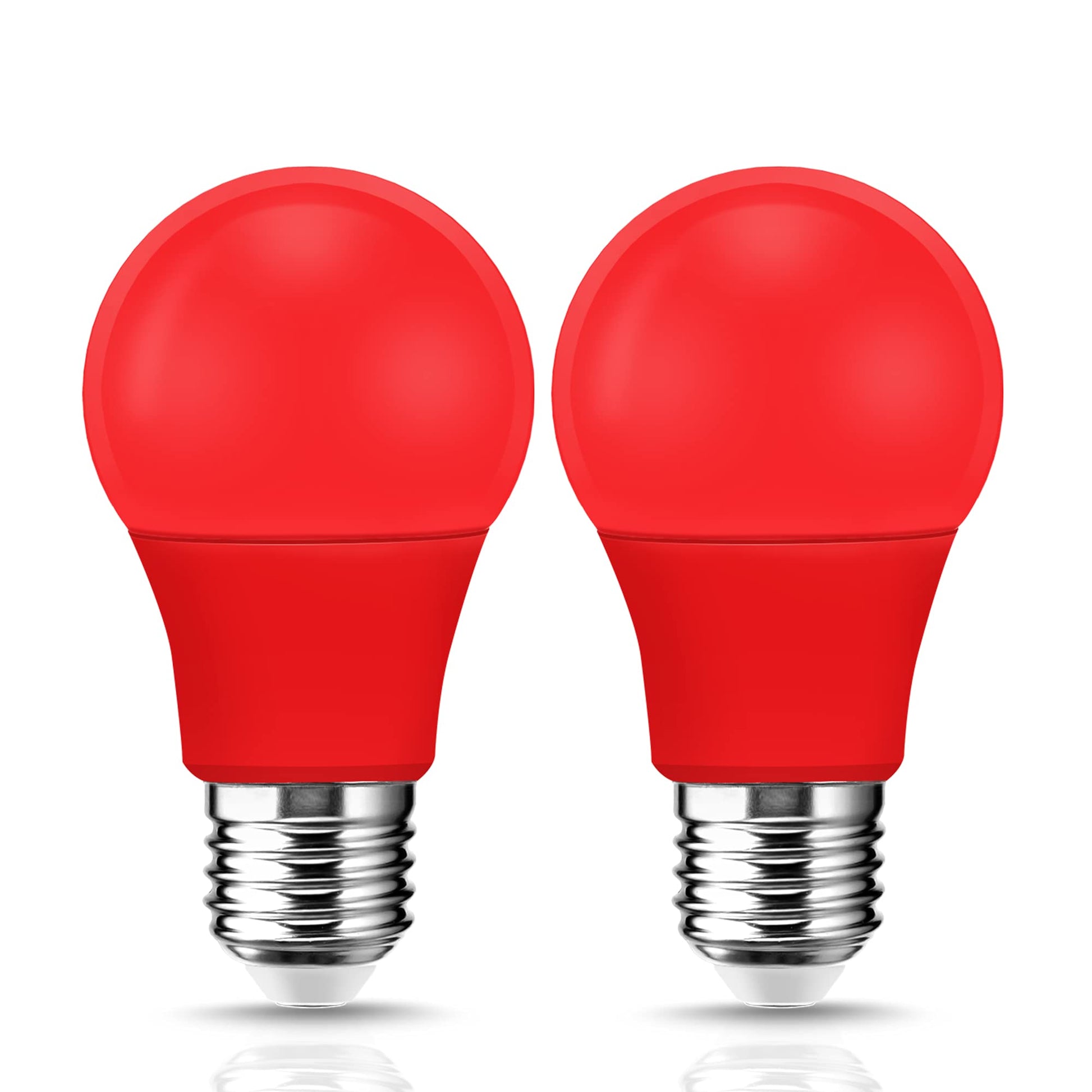 EvaStary Red LED Light Bulb 60W Equivalent, A19 E26 Base, 9W for Halloween, Christmas Decoration, Party, Bars, Porch Lights, Holiday Mood Lighting, Pack of 2