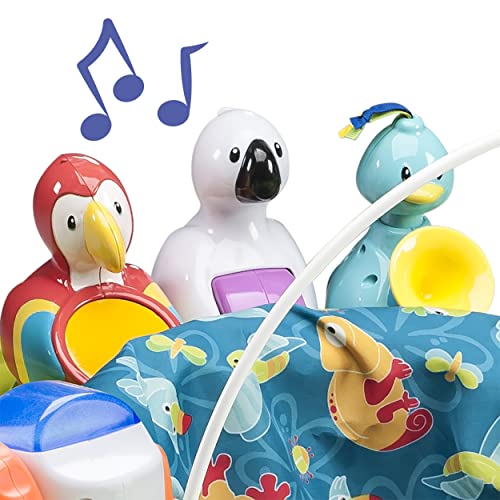 Details: Give them fun beyond their wildest dreams. The ExerSaucer® Life In The Amazon Triple Fun Bouncing Activity Saucer offers 2+ years of developmental play with 3 stages of use. The stage 1 play mat with toy bar can be used from birth and offers a soft place for baby to explore on their back. As they grow, tummy time is essential for core muscle development. The stage 2 bouncing activity saucer features 360 degree seat spin, a unique rocking base, 25+ activities, lights, sounds and a variety of colors and textures for loads of learning fun! Three easy-to-adjust height settings grow with baby. After baby has learned to walk, the activity center converts to an activity table for cruising playtime and play dates! Bouncing, reaching, turning and stretching are all part of your child’s development. You’ll also love that the seat cushion is machine-washable, toys are easy to clean, and set-up is quick and easy. The Life In The Amazon Triple Fun is a safe and entertaining environment to let their imaginations run wild!