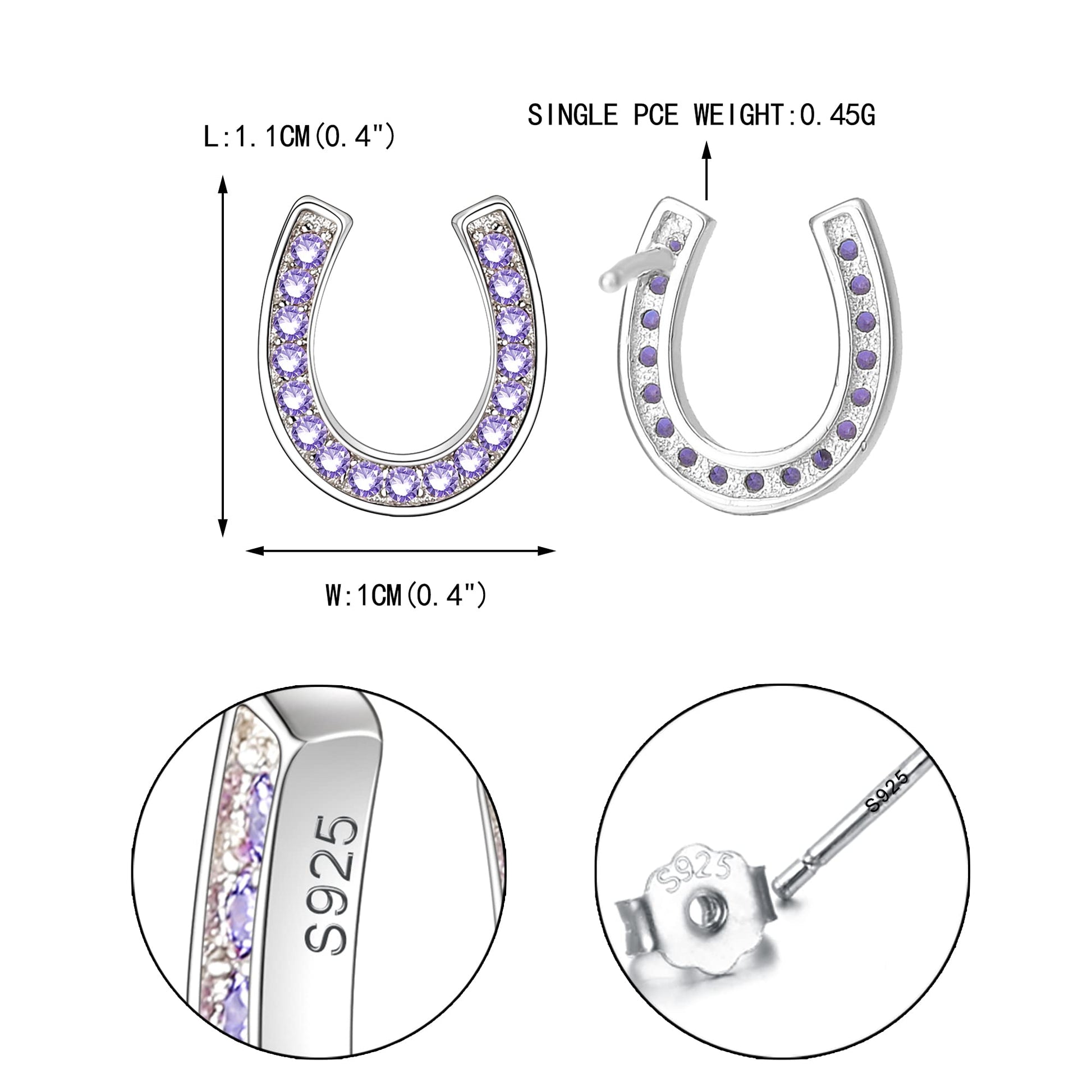 EVER FAITH 925 Sterling Silver Elegant Pave Setting Purple Cubic Zirconia Birthstone Lucky Horseshoe Stud Earrings
