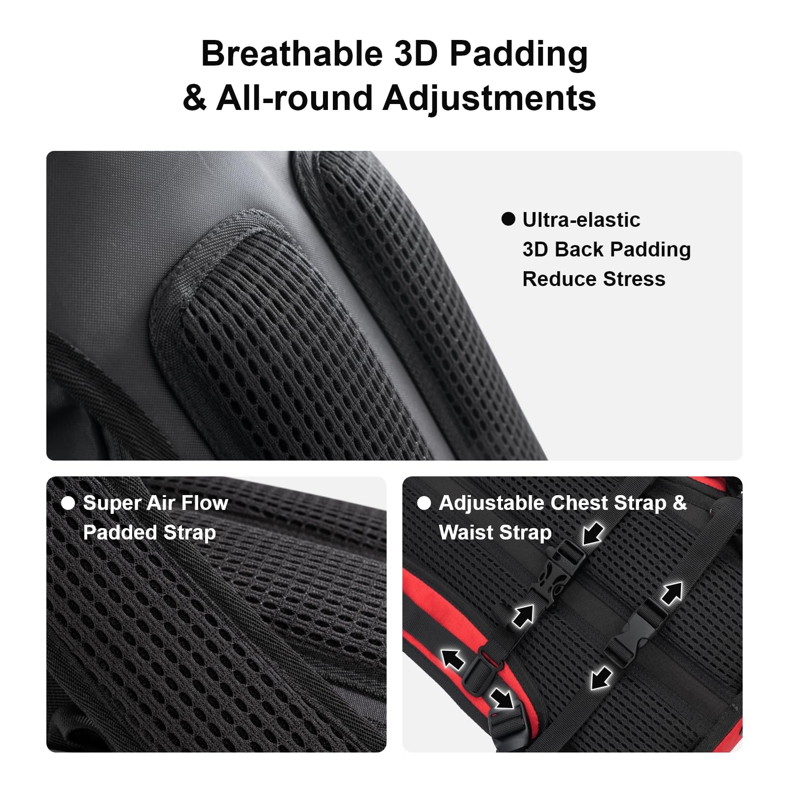 • HIKING/CYCLING/RUNNING/SKIING WITH EASE: This 2 lbs lightweight water backpack features an ultra-elastic 3D breathable padded back, adjustable chest and waist straps to provide comfort and stability for all body sizes. This day pack has got you covered for all your adventures.