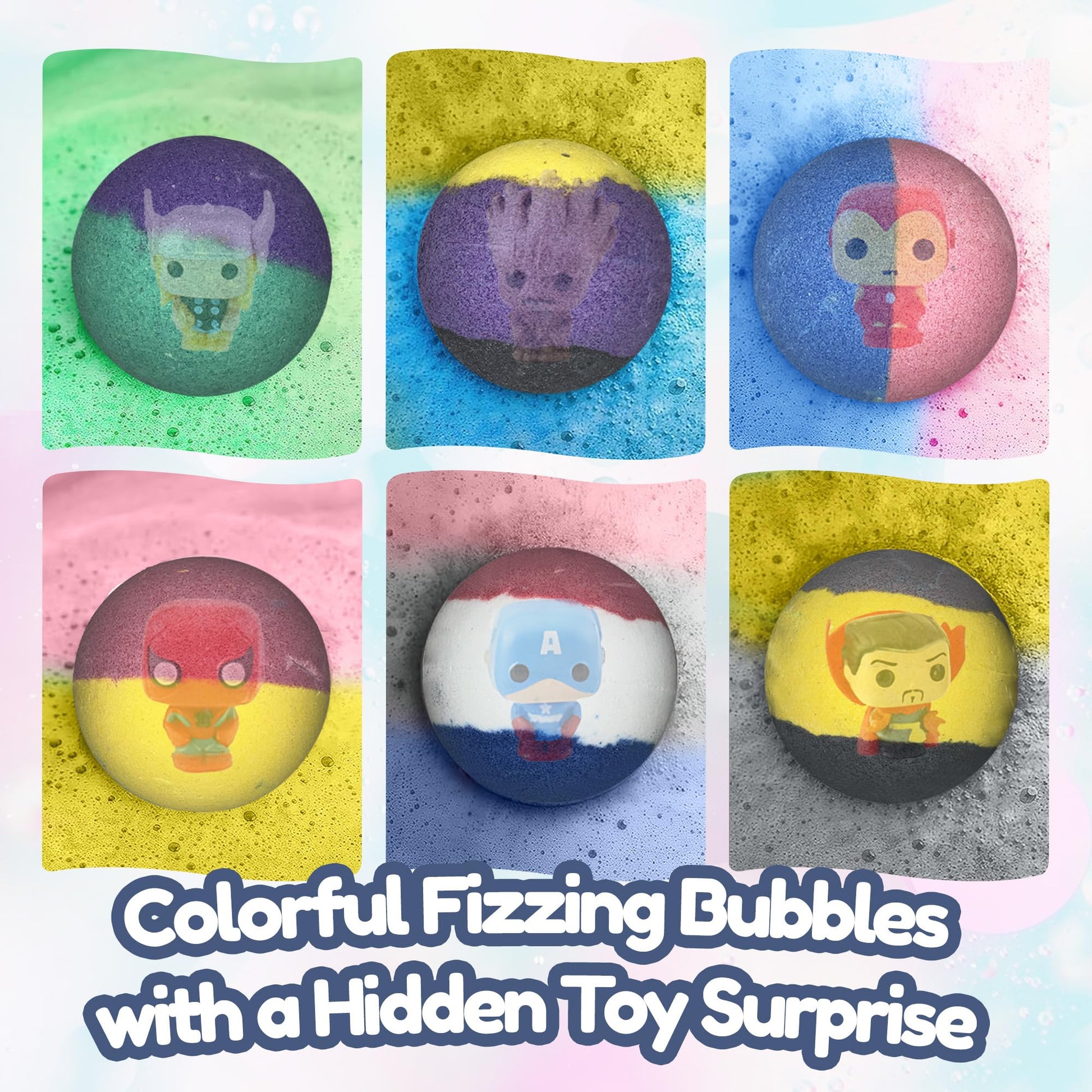 • Kids Bath Bombs for Boys with Surprise - Our non toxic kids bath bombs are designed to be safe & fun. Our superhero bath bombs for boys with toys hidden inside make the best superhero gift. Kids love discovering an epic super hero character bath toy is found in each fizzy bathbomb.