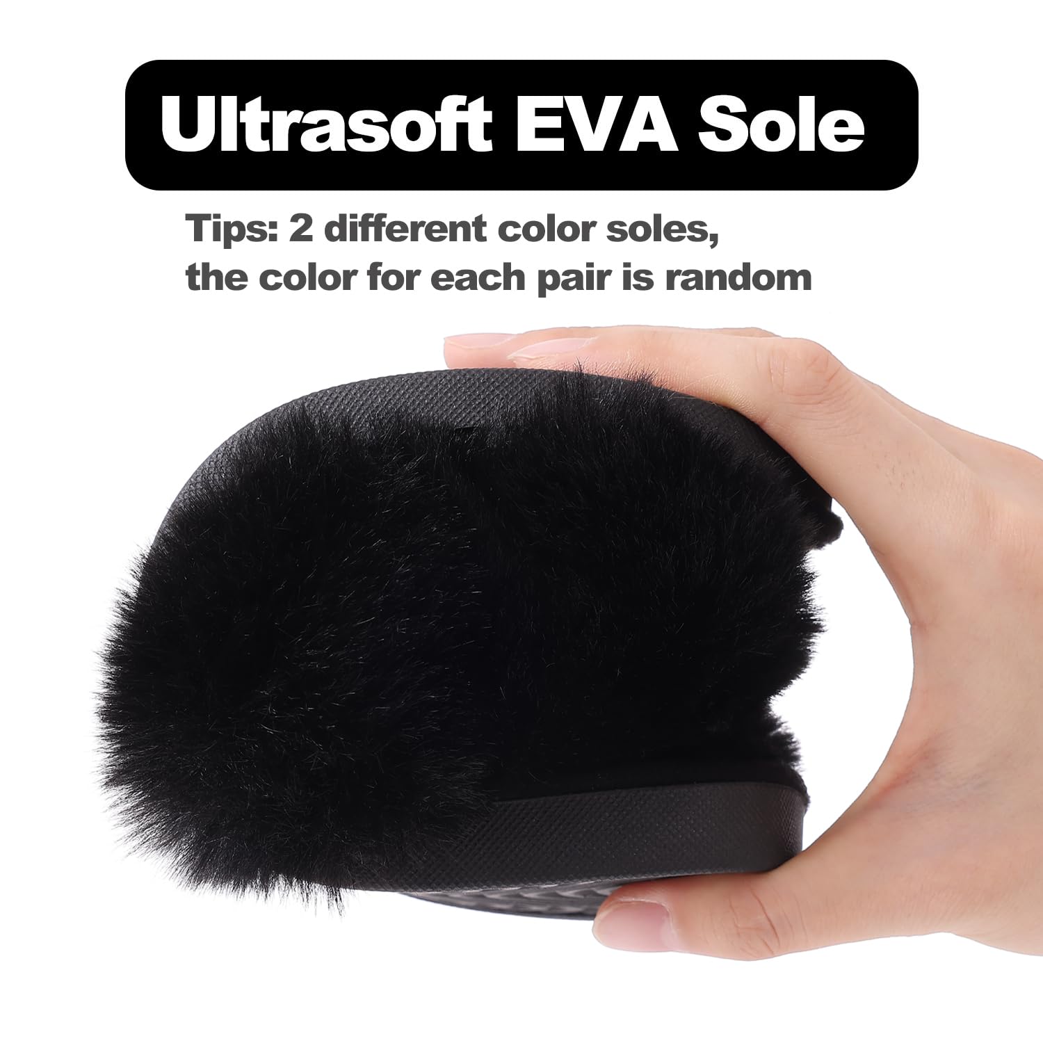 Evshine Women's Fuzzy Slippers Cross Band Memory Foam House Slippers Open Toe, Black, 36-37 (Size 5-6.5)