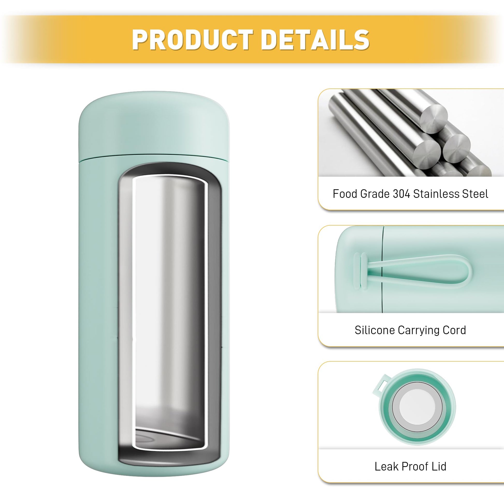 Details: Exllena Small Water Bottle 10oz, Small Insulated Water Bottle for Hot&Cold Drinks, Water Bottle Purse with Carry Handle - 100% Leakproof Perfect for School, Travel...(Mint)