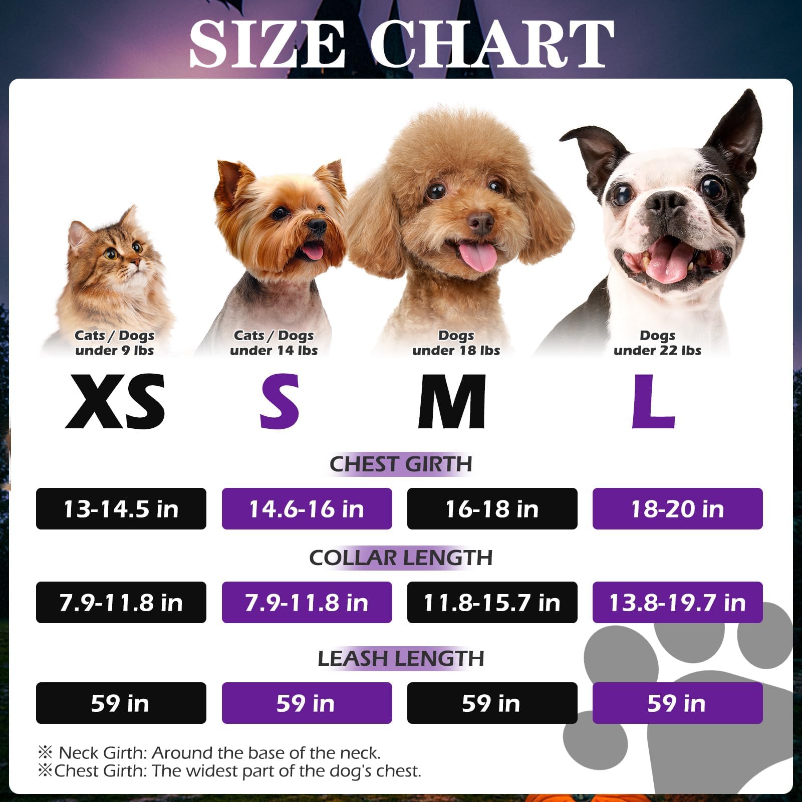 • Halloween Pattern: The puppy harness collar and leash set are featured with a Halloween elements pattern in purple color, making your furry companion the most attractive and fashionable one. Not only suitable for festivals, but also for daily queuing and other occasions.
