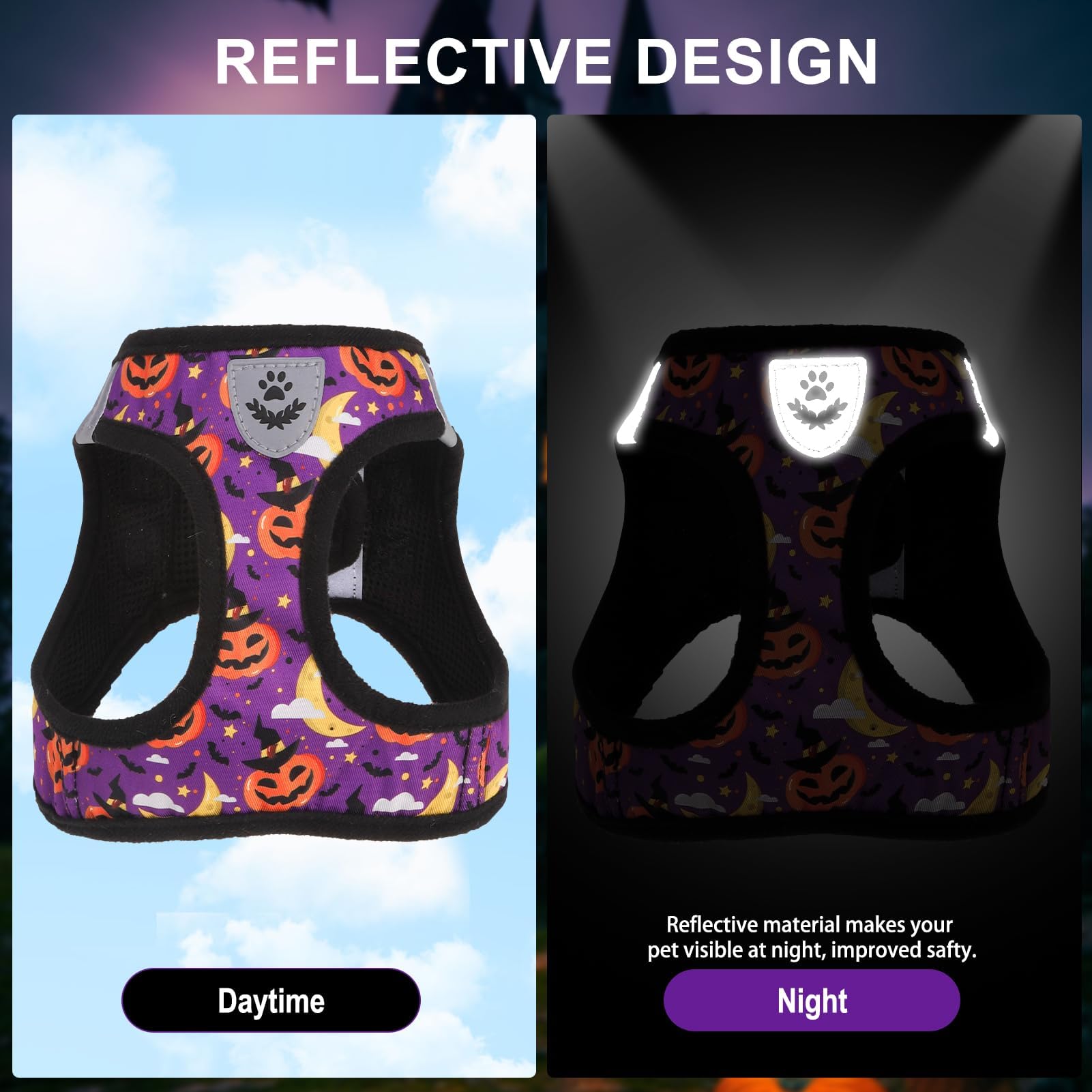 EXPAWLORER Halloween Puppy Harness - Dog Collar and Leash - Soft Mesh Padded Adjustable Step in Small Dog Vest Harness No Pull, Reflective Escape Proof for Outdoor Walking, Purple M