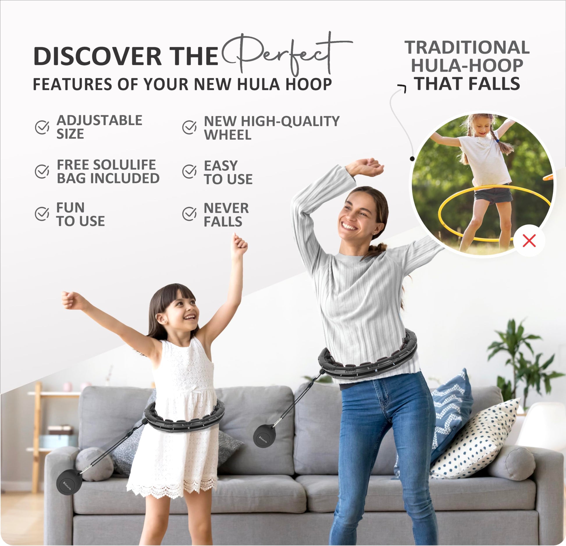 • Durable & less Noise: Boost your workouts with our durable hula hoop, featuring upgraded Solulife wheels and ABS pivots for a smooth exercise experience. The Exercise hula hoop blends style with function, making the exercise infinity hoop and infinity hula hoop your ideal fitness partners.