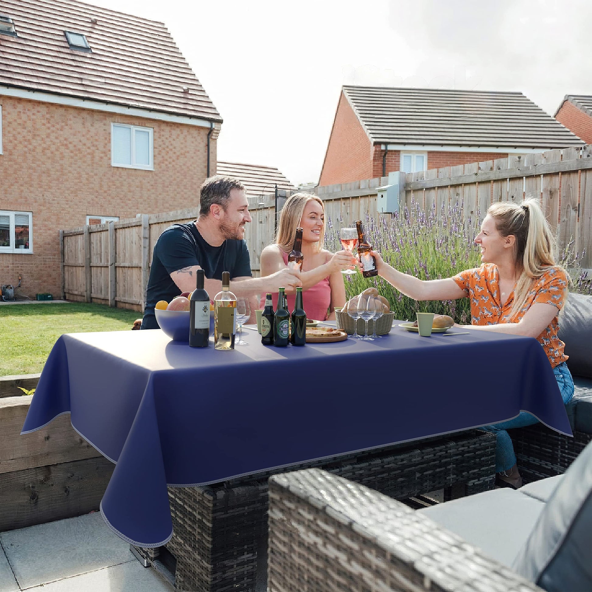 • ️INCLUDES: 1 heavy duty reusable dark blue rectangle flannel backed tablecloth that will cover your table for protection and is great for homes with children, kitchen tables, dinning tables, dinners, family outings. bbq's and more!!!