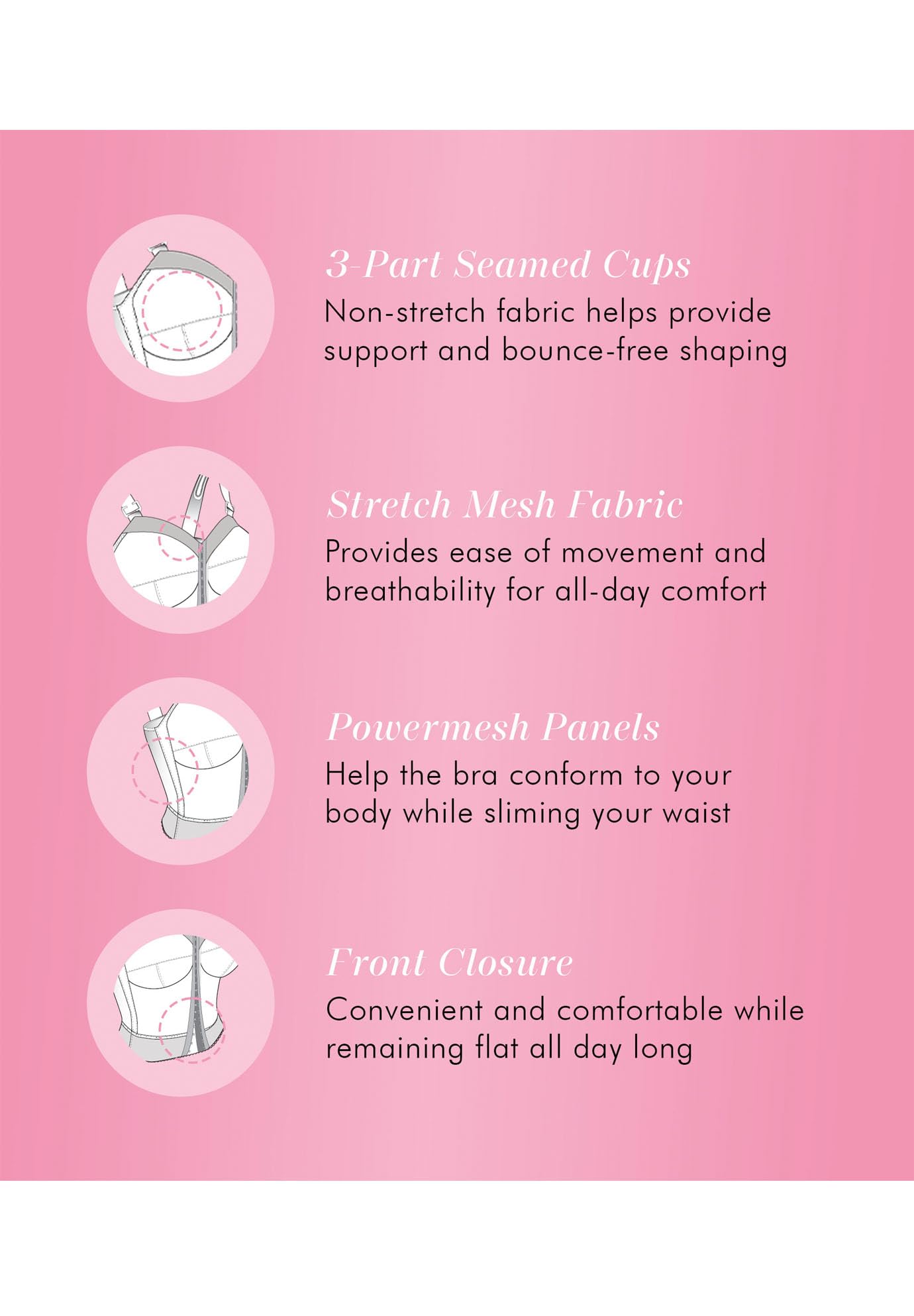 POSTURE SUPPORT. This women's full-figure longline is designed with supportive 3-part seamed cups, power mesh waist-slimming panels and flexible side boning to help support your back, smooth your waist and correct your posture.